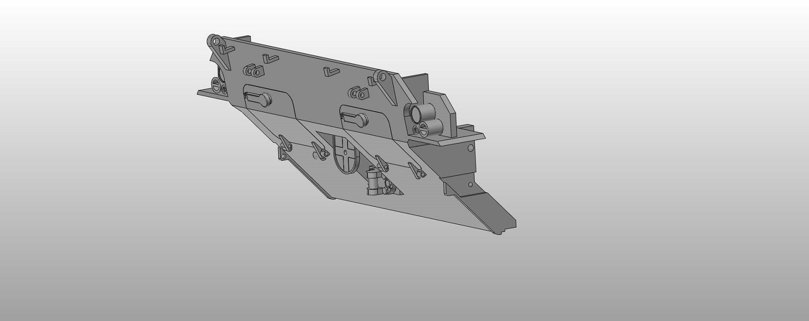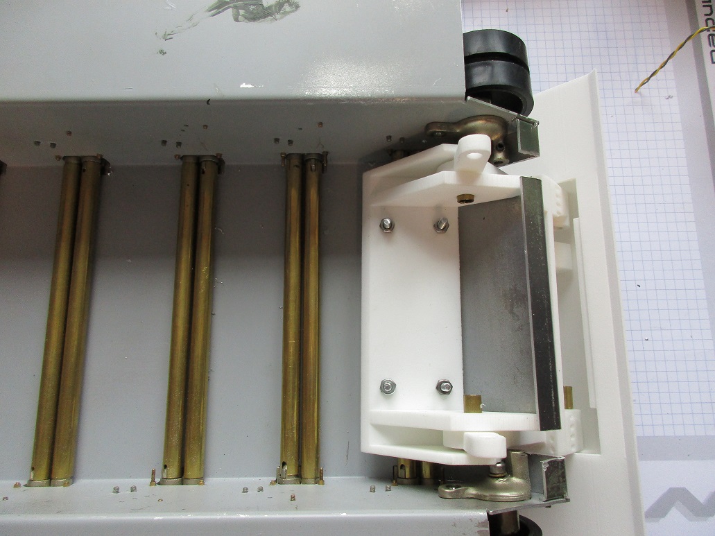Aber ,an den Hilfsarmen fehlen vorne an der Aussparung , die in die kleinen Mitnehmerrollenollen an der Brücke greifen , noch die kleinen Spitzen zum Einfädeln der Mitnehmerrolle