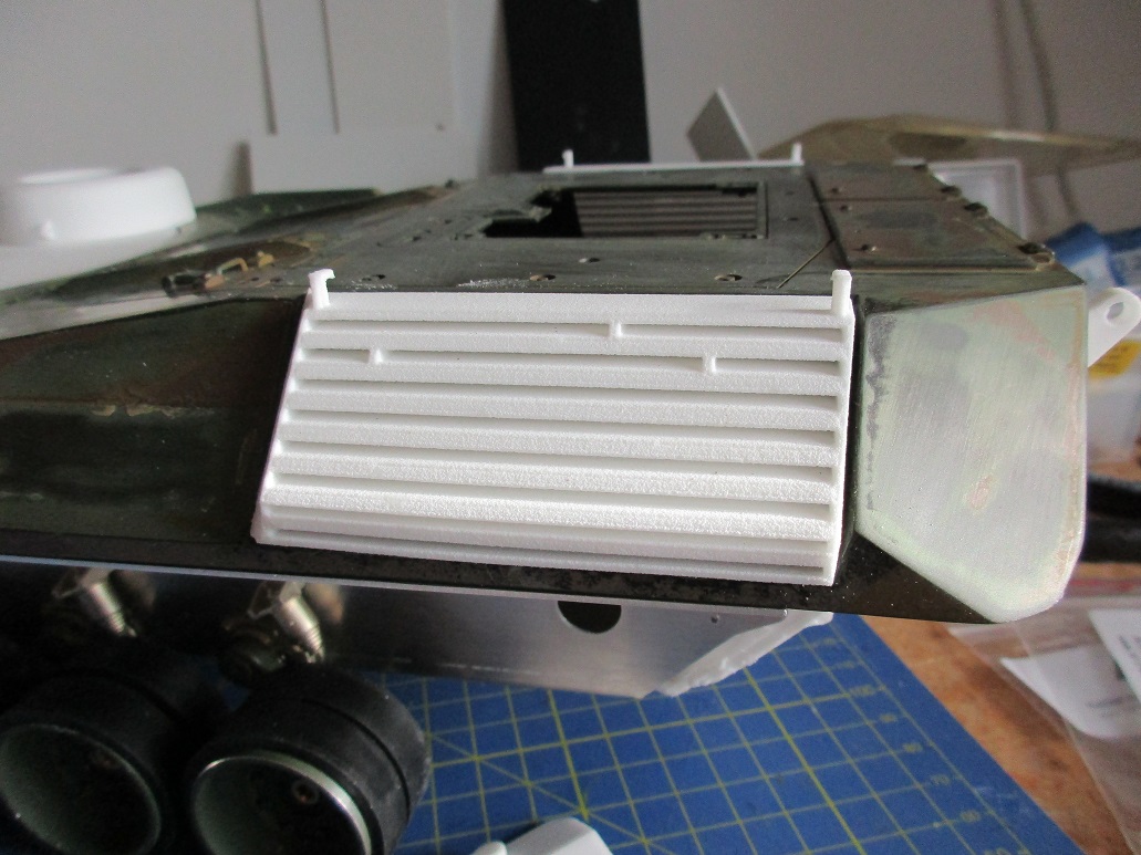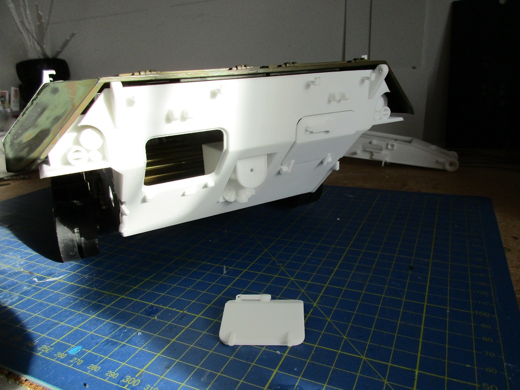 Aber weiter mit dem Biber. Die Rückwand ist fertig, die Klappen sind zum öffnen. Die Halterung des Stützschildes wurde neu gemacht. Dazu die Auspuffgrätings.