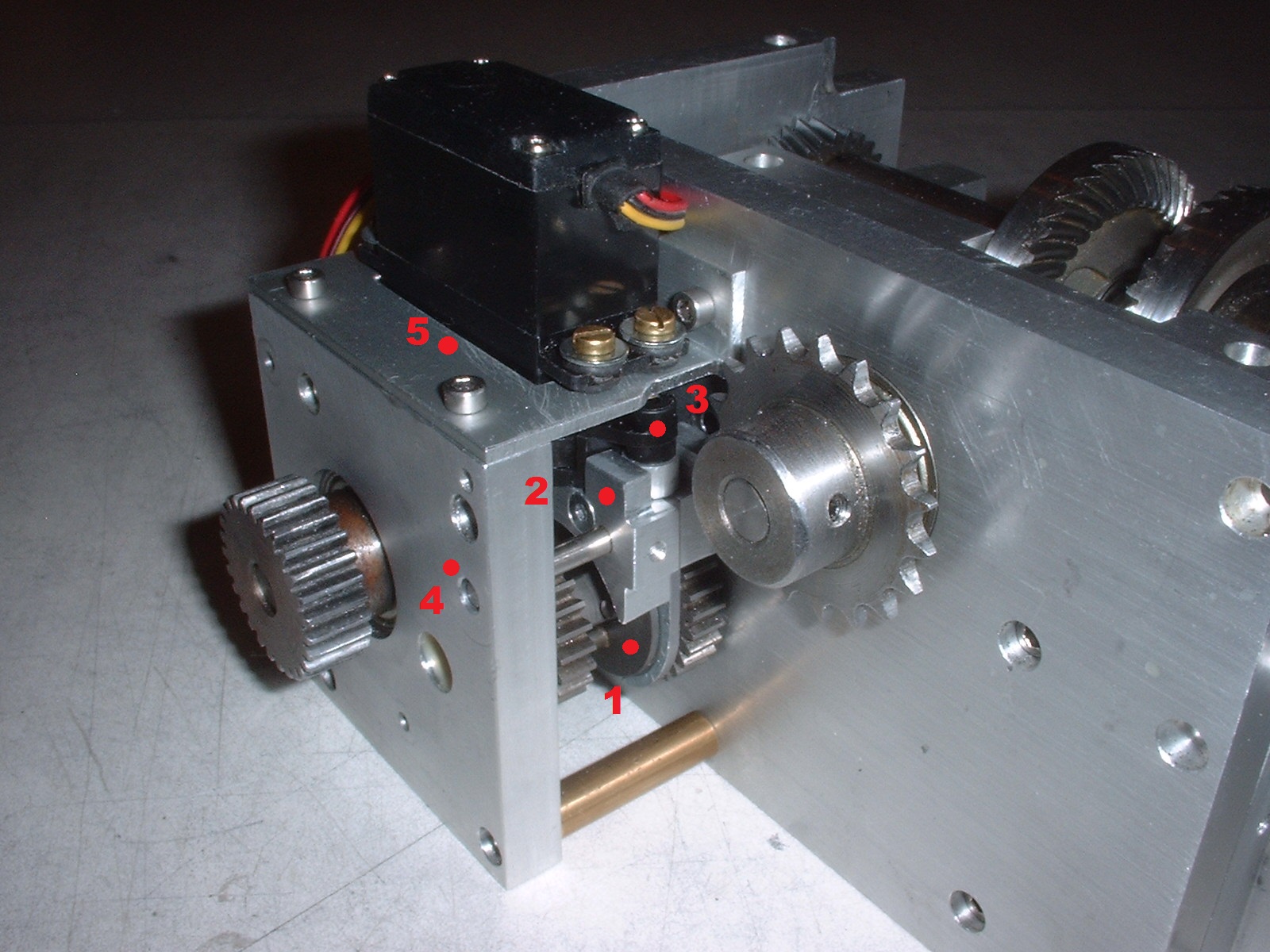 Nach geschätzen fünf Runden im Garten, tut es einen Schlag im Getriebe, der Motor dreht hoch und der Vortrieb ist weg. Eine vorläufige Analyse zeigt dass eines der Zahnräder auf der Welle (daher Punkt 7) wieder durchdreht.