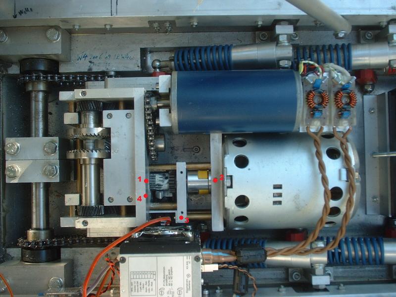 • Die Eingangswelle der Schaltung wurde mit einer Elastischen Kupplung (Punkt 2) direkt mit dem Fahrmotor verbunden.