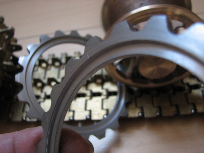 Die Zahnkränze sind aus Stahl gefertigt und verschraubt. Die Muttern sind wie im Original mit Platten gesichert. -- Nicht fragen, ob - fragen, wie