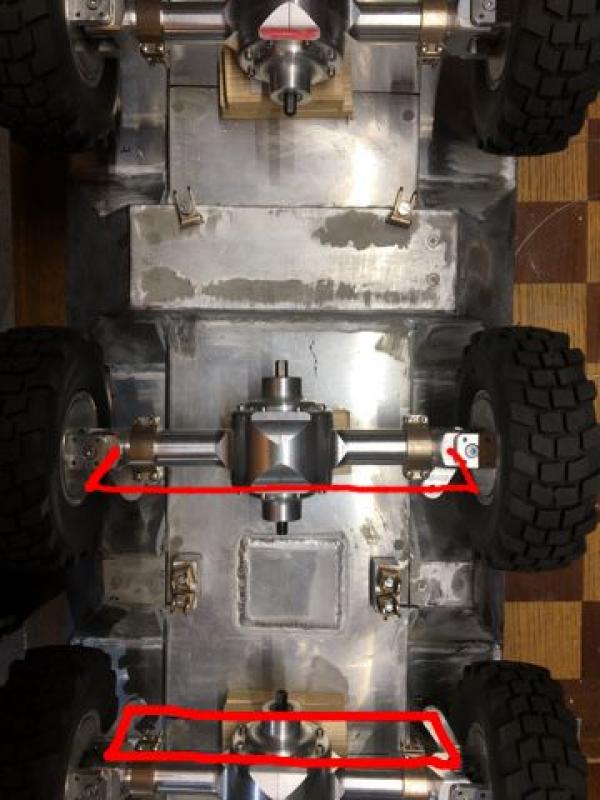 So richtig hab ich auch noch keine Idee wie ich das mit der Lenkung umsetzen werde. Mein erster Gedanke war, das ich jede Achse separat mit einem Servo ansteuere, um die Lenkgeometrie besser in den Griff zu bekommen. Wie ich das aber mechanisch und platztechnisch hinbekomme, muß ich mal schauen wenn das Fahrwerk richtig sitzt.