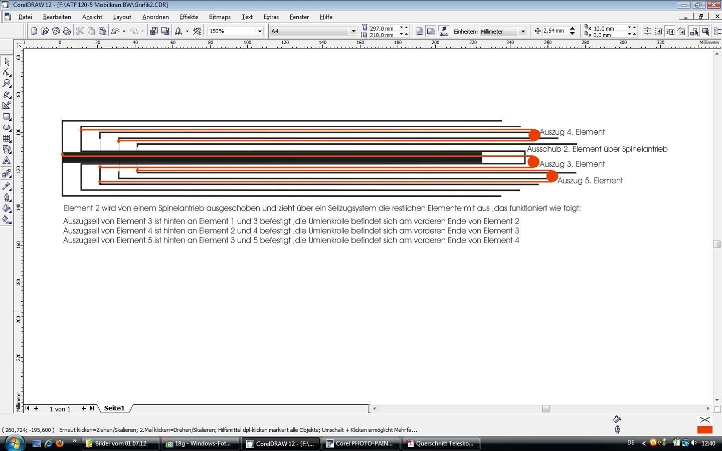 Anbei mal 2 Zeichnungen für das Prinzip eines Teleskopausschubs mit Spindel und Seilzug wie ich es an meinem Kran verbaut habe