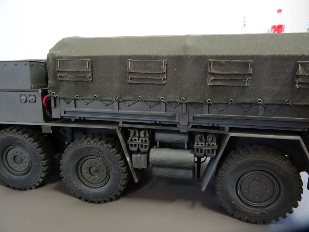 Hier die Fahrerseite mit den Druckluftbehältern und den Reservekanistern