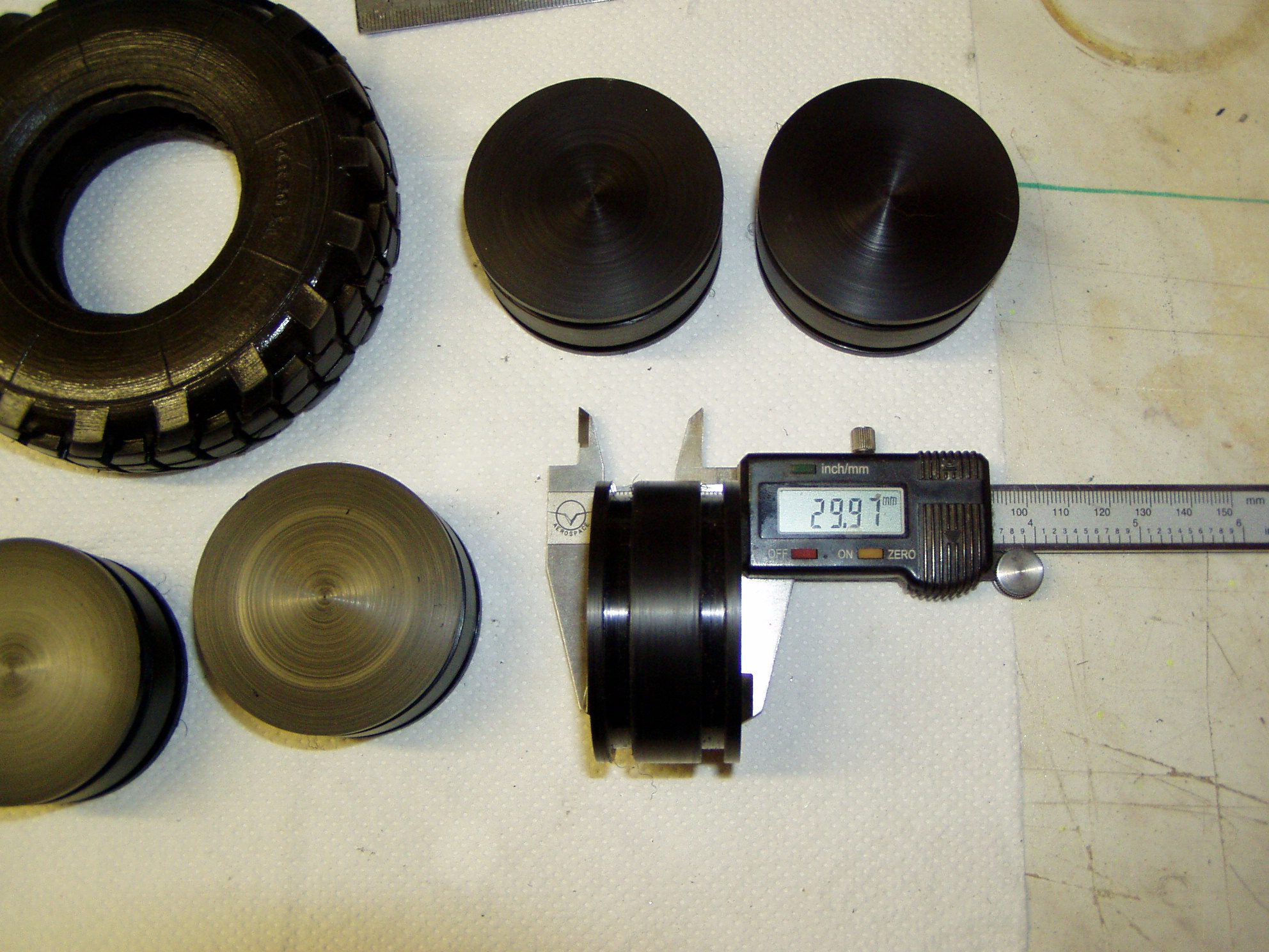 Die Reifen sind von AFV, dank eurer Hinweise. Sehr detailiert, aber leider mit 278 Gramm pro Stück auch "hundeschwer" Macht bei 6 Stück allein für die Reifen knapp 1,7 Kilo. Schwimmfähigkeit? Steht noch in den Sternen.