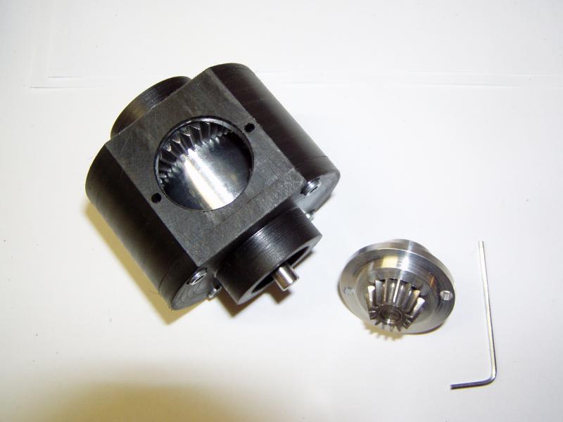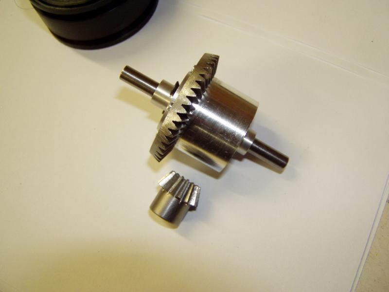 Trotz mancher Bedenken habe ich mich für Differentiale von Veroma entschieden. Diese wurden mit einem Kegeltrieb Modul 1 in 3:1 Übersetzung versehen. Stahl ungehärtet vom Mädler. Die Diffs sind mit dickflüssigem Silikonöl, 100.000 Centistoke(cSt) einigermaßen gesperrt.
