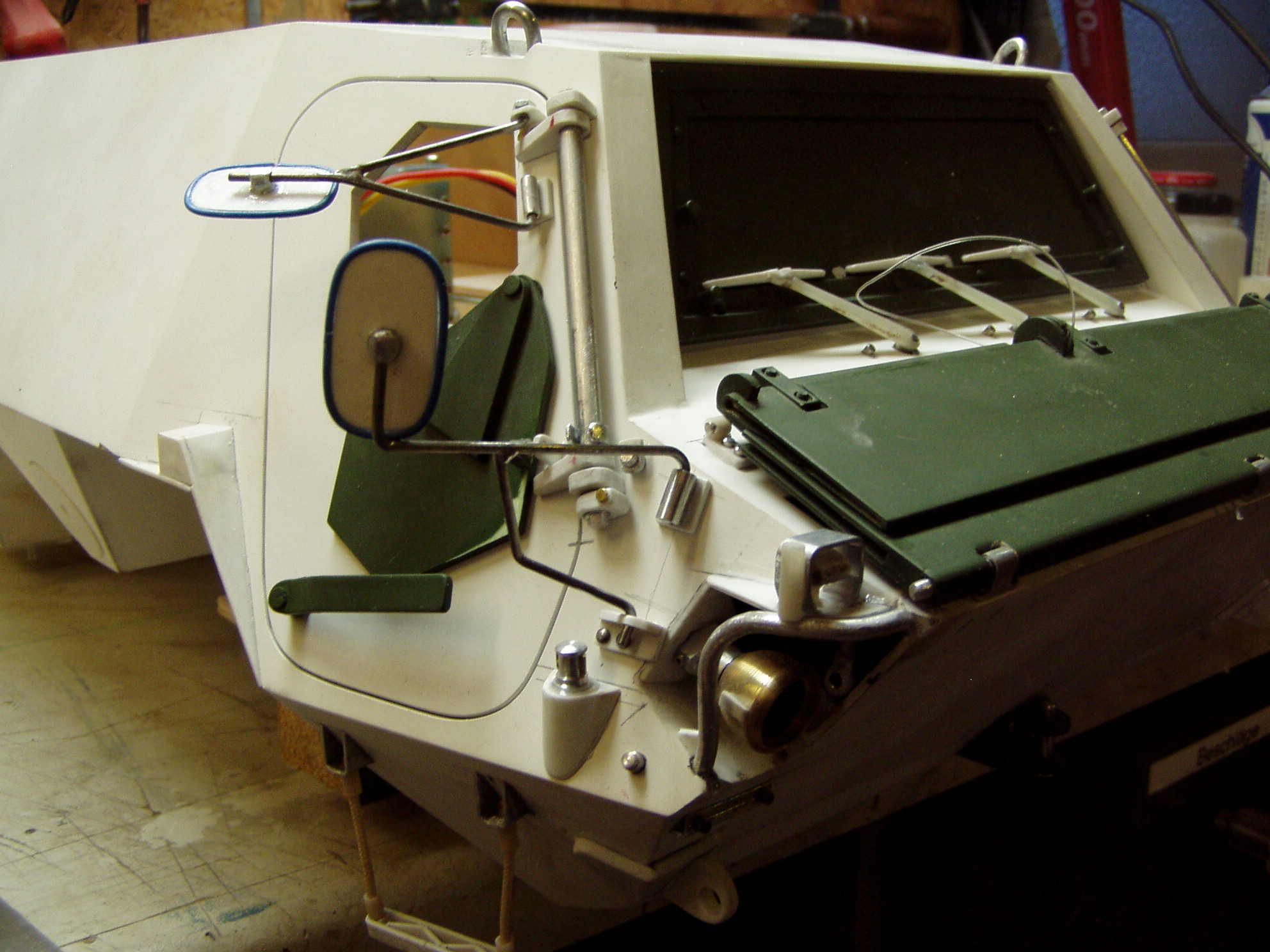 Von vorn rechts, Beschußblende, Spiegel, Türscharnier. Ist nur angedeutet, die Türen sind fest verklebt.