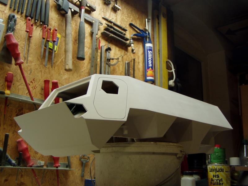 Hier nun erstmals weis gefüllert mit 2-K und verschliffen. Sieht doch fast aus wie Poly, oder..