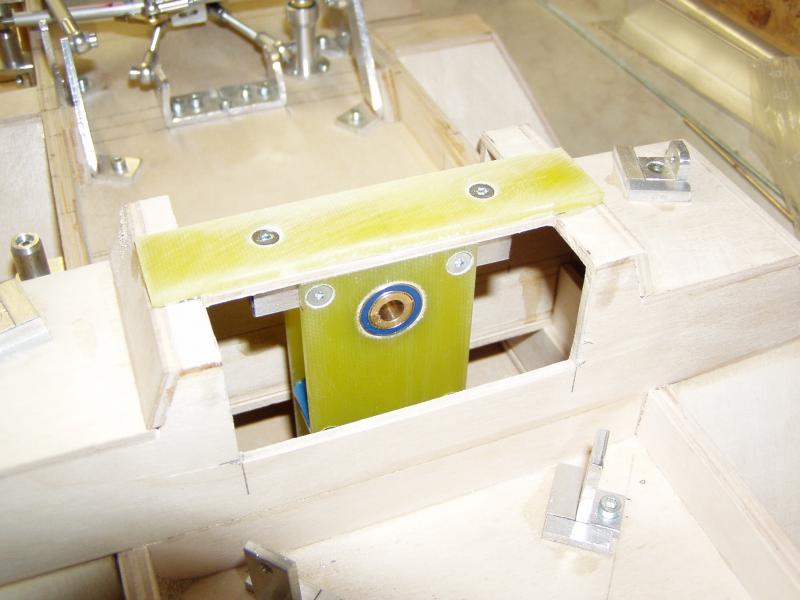 Schon beim Rohbau der Wanne mußte ich an den Mechanissmus fürs Schwallbrett denken, hier die Durchführung und Anlenkung, wasserdicht durch Wellendichtringe. Die Hebelchen aus Alu gefräst/gefeilt, Schwallbrett aus ABS gefertigt. Leider komme ich an die Hebelage nach Fertigstellung nie wieder ran, bleibt zu hoffen, das alles dicht ist.
