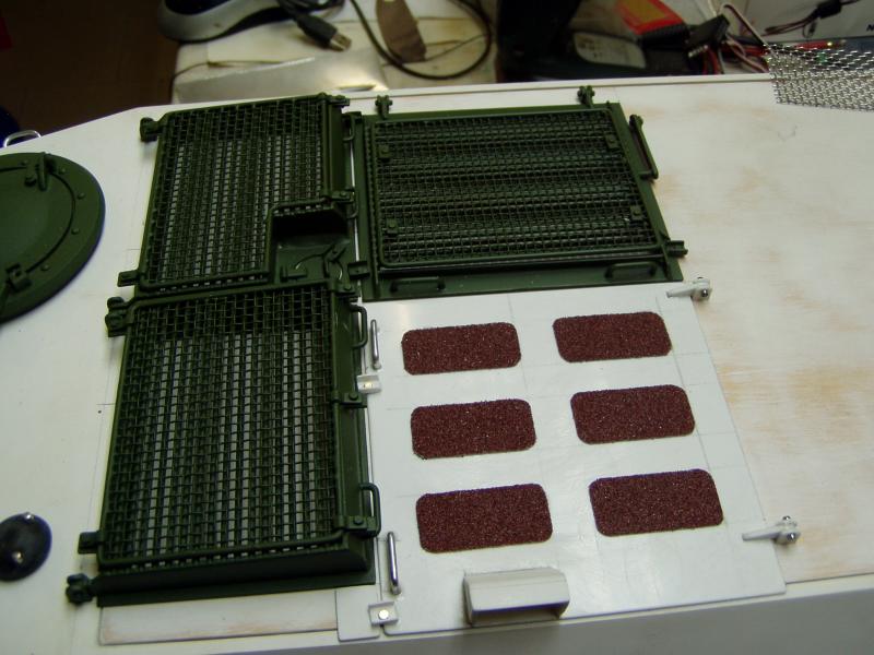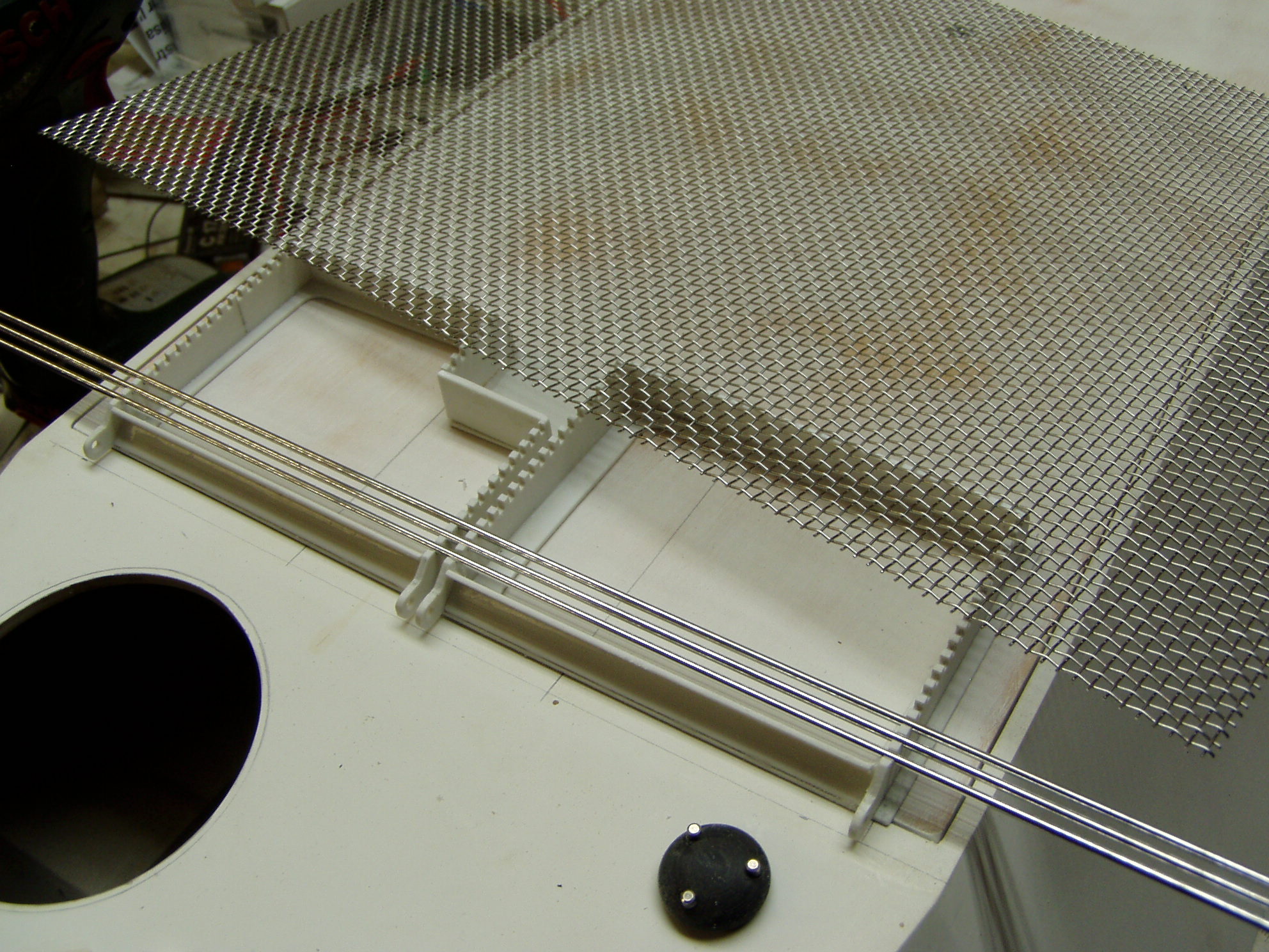 Die Abdeckgitter, Maschenweite 2 mm, Drahtstärke 0,5 mm aus der Bucht, wurden mit 1,6 mm Schweissdraht eingerahmt und verklebt. Haltelaschen gefertigt, mittels M1,2 Sechskantschrauben befestigt, wenn auch nur geklebt. Lackiert und gut...