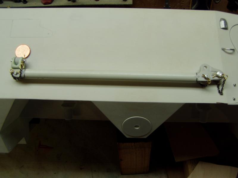 Bolzen gedreht/gebohrt, mit Sicherungssplinten aus 0,8 mm Messingdraht gebogen, mit Sicherungskettchen versehen.