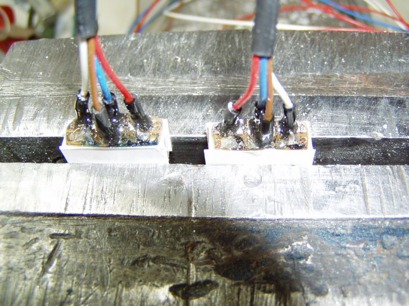 Erster Test und Schreck: Rücklicht an LED-Tester (nur die mittlere LED), durch den Verguß erstrahlt fast alles. Habe sie nochmal zerlegt, zwischen den LEDs mit 1,5 mm Fräser 5 mm tief eingefräst, dünnen Plastikstreifen dazwischen geklebt, Ergebnis morgen.