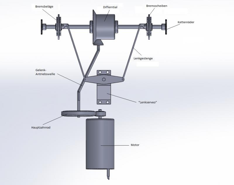 Wenn ich mich nicht täusche, müsste das selbe Prinzip beim originalen Tiger 1 zur Anwendung gekommen sein... Die Lenkung würde ich (nach meiner Wunschvorstellung) mittels Bremsscheiben und einem Servo realisieren.