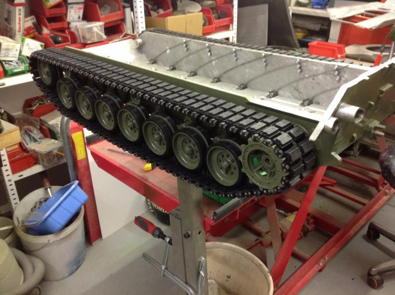 Mädler hat eine sehr gute Qualität, die aber auch bezahlt werden muss. Und der Stahlring sollte zu mindestens 50...80%überdreht, d.h. abgespeckt werden. Nicht jeder kann so große Teile bearbeiten. Für weniger als ein Viertel des Preises gibt es z.B. von Hefter recht gute Drehkränze aus Alu. Einen Zahnkranz kannst du dir aus Alu für ca. 30 Euro lasern lassen, damit hast du für ca. 50.- einen kompletten Turmdrehkranz. als Antrieb kann ein einfacher Getriebemotor (Conrad, China,...) mit Fahrregler oder Servoelektronik verwendet werden. Bei dieser Bauart bleibt ein großer Freiraum im Innern des Drehkranzes - das gibt Platz für die KWK-Wiege beim Heben der Kanone.
