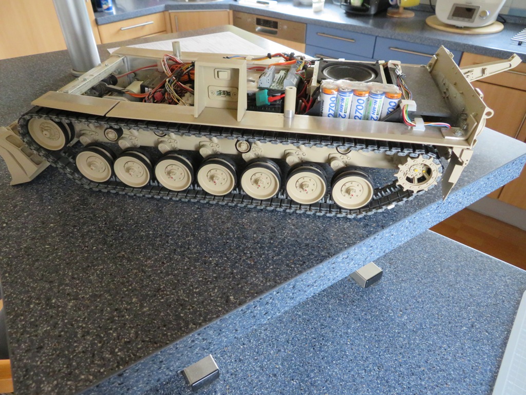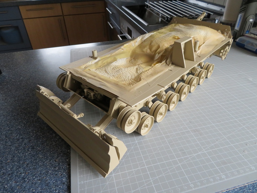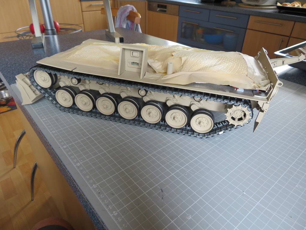 Nach Demontage der Laufgummis und Ketten ist ging es los Farbe aufzutragen.