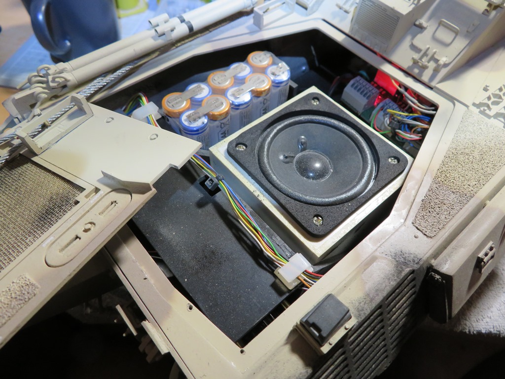 Ein wenig stört mich allerdings der Fahrfilm, in dem das Modell manchmal umherhuscht und Haken schlägt wie eine Wüstenratte. Geht es denn wirklich nicht, diese relativ kleinen Modelle vorbildähnlicher zu fahren? Damit meine ich laaangsames Anfahren, laaangsame Kurven und auch laaangsames Anhalten; verbunden mit mäßiger Maximalgeschwindigkeit. Ich weiß, mit meinen 1:6-ern habe ich da relativ leicht reden, aber inzwischen habe ich auch 2 Modelle in 1:16 in Betreuung, und nach der Umrüstung von der HL-Innerei auf Beier Soundfahrtregler kann man die genauso vorbildgetreu fahren und lenken wie bei 1:6. Genau das gibt dann erst den stimmigen Eindruck zwischen Aussehen und Fahrverhalten.