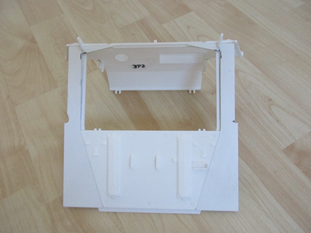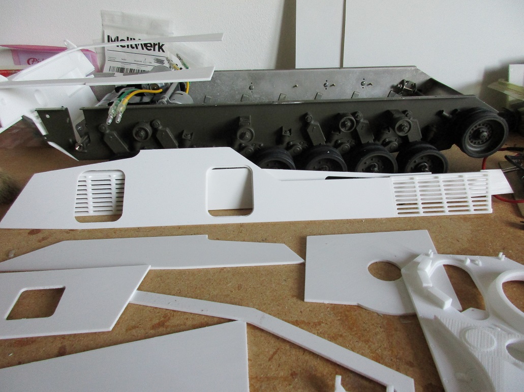 Fangen wir mal an das Puzzle für Erwachsene zusammenzusetzen. Zuerst wurde die Leo1 Wanne bis zum Ende der Schrägen vorn abgeschnitten sowie links und rechts von der Aufnahme Achse Umlenkrolle. Das wird neu.