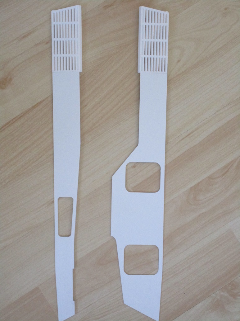 Die gedruckten Auspuffgrätings mit den gefrästen Seiten verkleben (Kleber: Sekundenkleber)