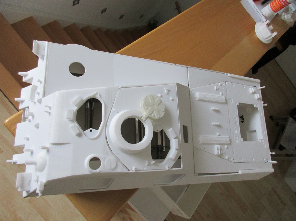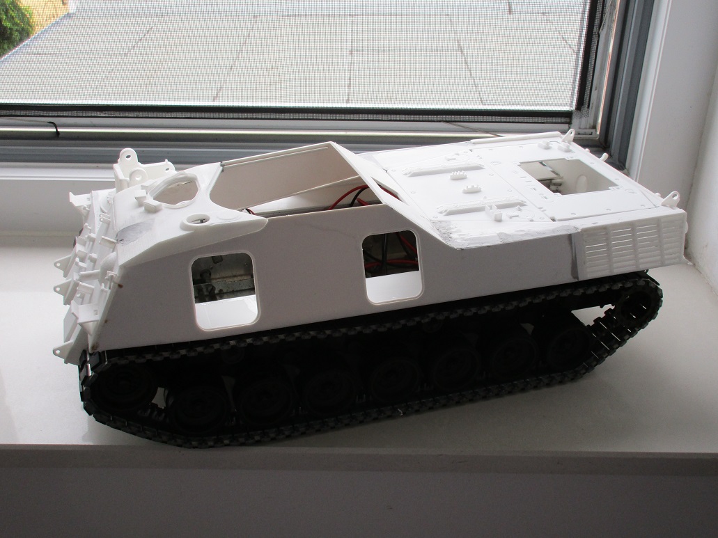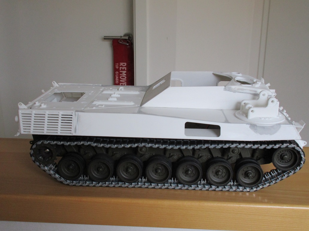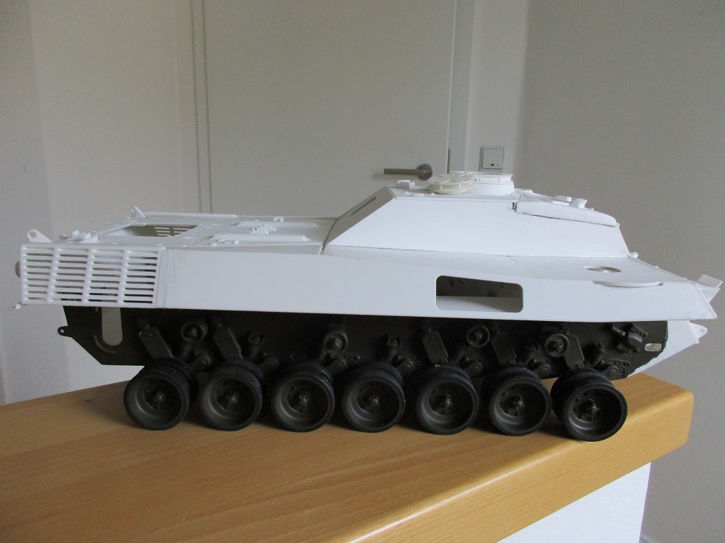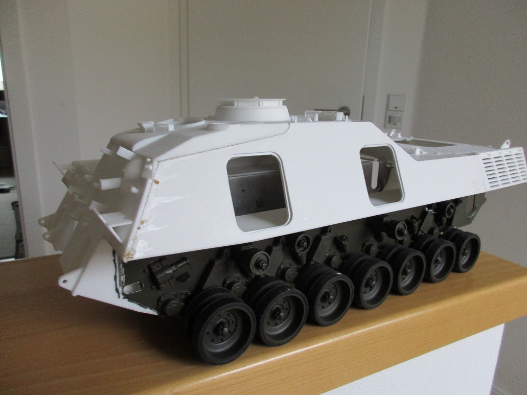Urlaub und schlechtem Wetter sei Dank habe ich die Antriebe von AFV mit den KennyKong Ketten verbaut. Dazu die Dreheinheit für den Kran (AFV/ Büffel). Eine Menge Verstärkungen ins Poly und spachteln. Ich bin aber bisher zufrieden.