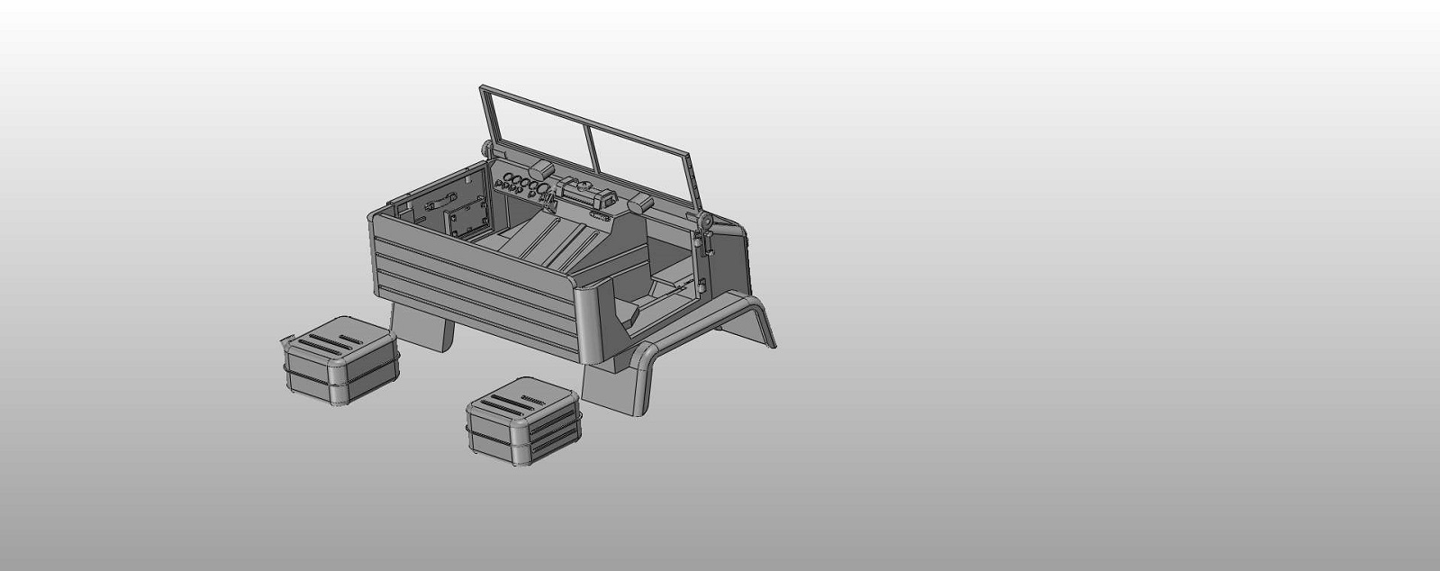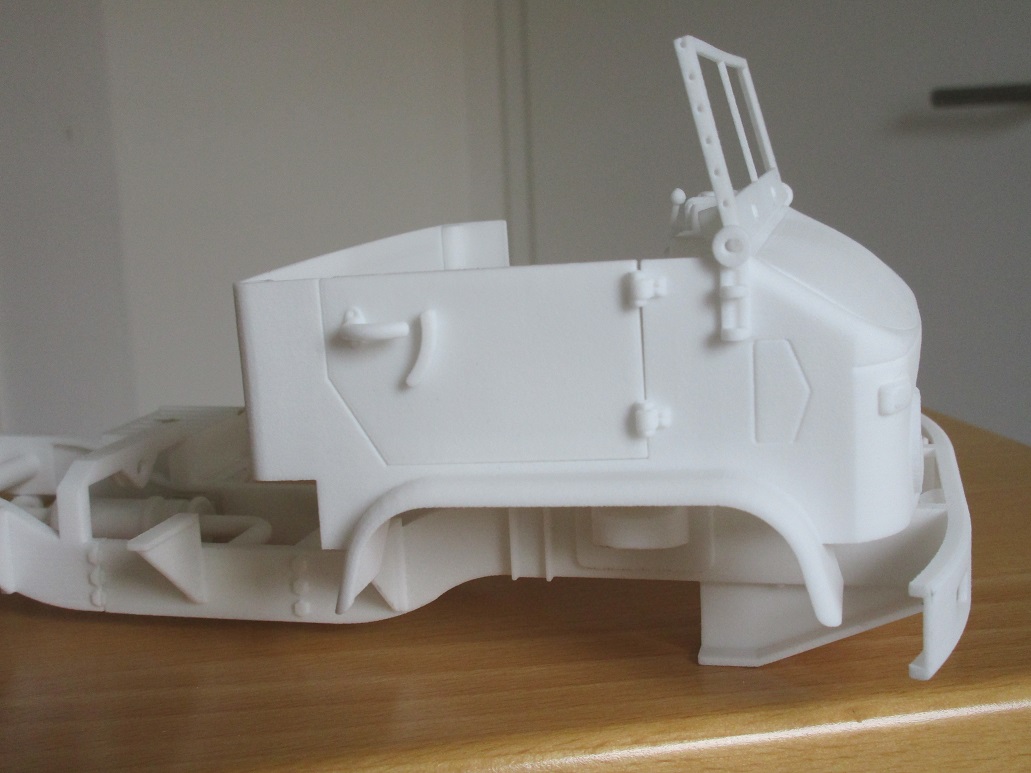 Da die CAD Datei des Fahrerhausprototypen durch häufiges Ändern und anpassen kaum noch zu bearbeiten war (unstrukturiert, wer selbst konstruiert ahnt was ich meine, so eine Datei besteht schnell aus 200+x Schritten) hab ich Sie neu erstellt. Das heißt im Grunde neu anfangen. Aber das Ergebnis sollte passen, optisch kaum Unterschiede. Und die Datei bietet noch (da sauber strukturiert) Möglichkeiten für evtl. Anpassungen.