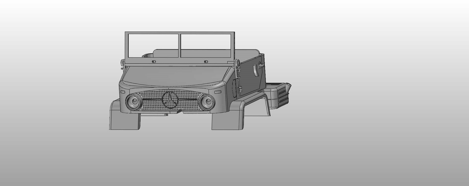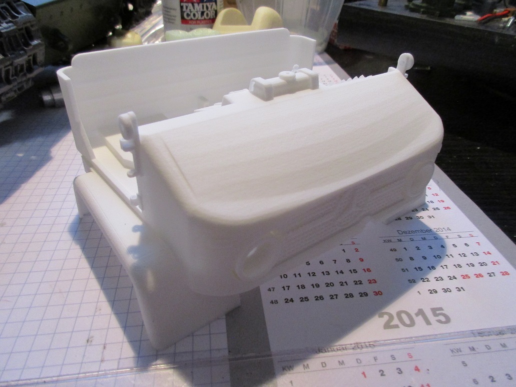 Was mir im Kopf rumgeht ist das Gitter vorn nicht mit zu drucken sondern aus Metall nachträglich einzufügen. Aber diese Möglichkeit besteht ja jetzt auch. Mal sehn.