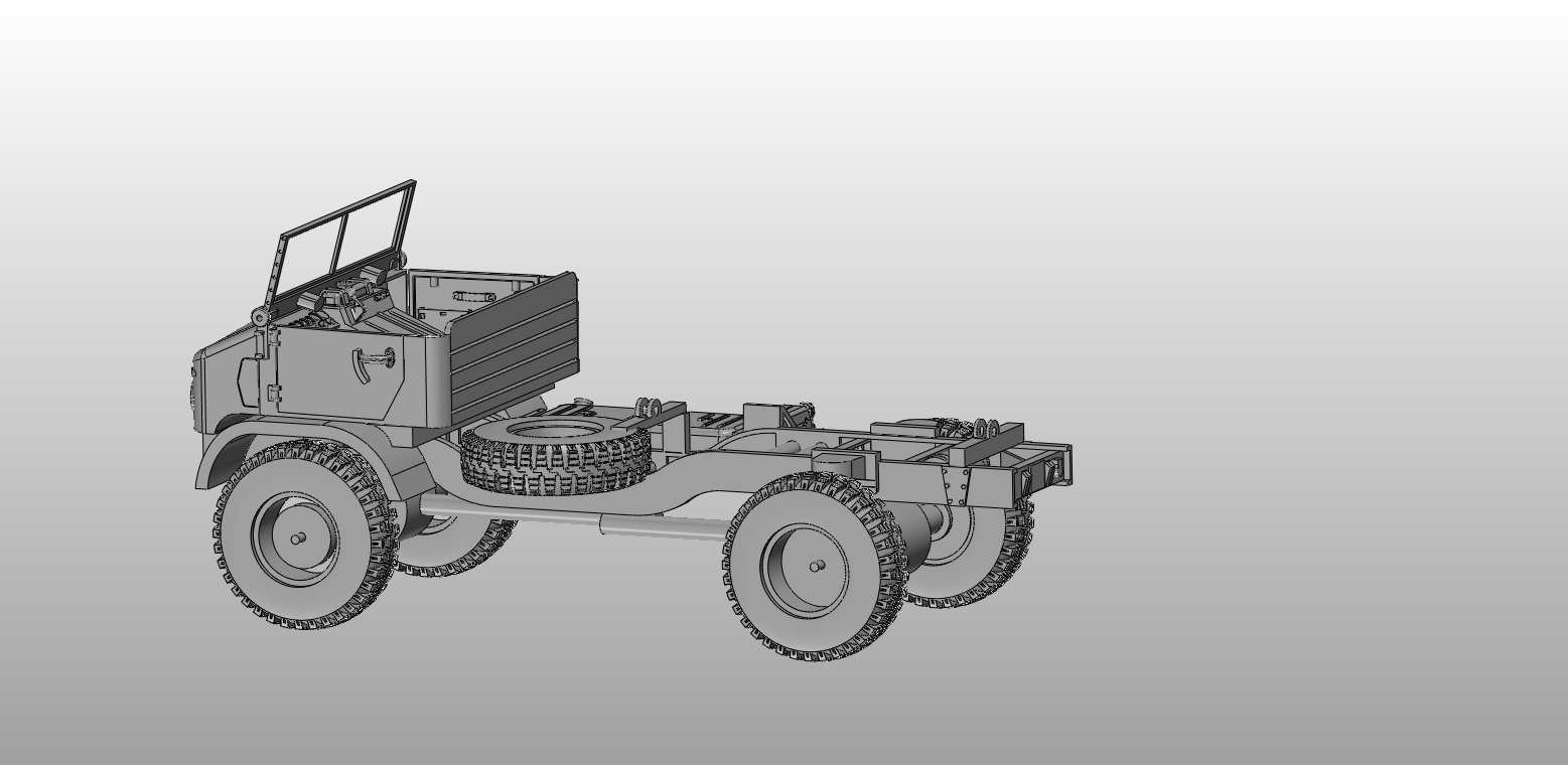 Hier die Achsen. Selbst die Reifen sehen brauchbar aus. Ich werd das jetzt mal zeichnen und in den ZSB einfügen. Auch an der Hütte bin ich dran (rundere Kotflügel) aber je mehr man guckt je verwirrter wird man....