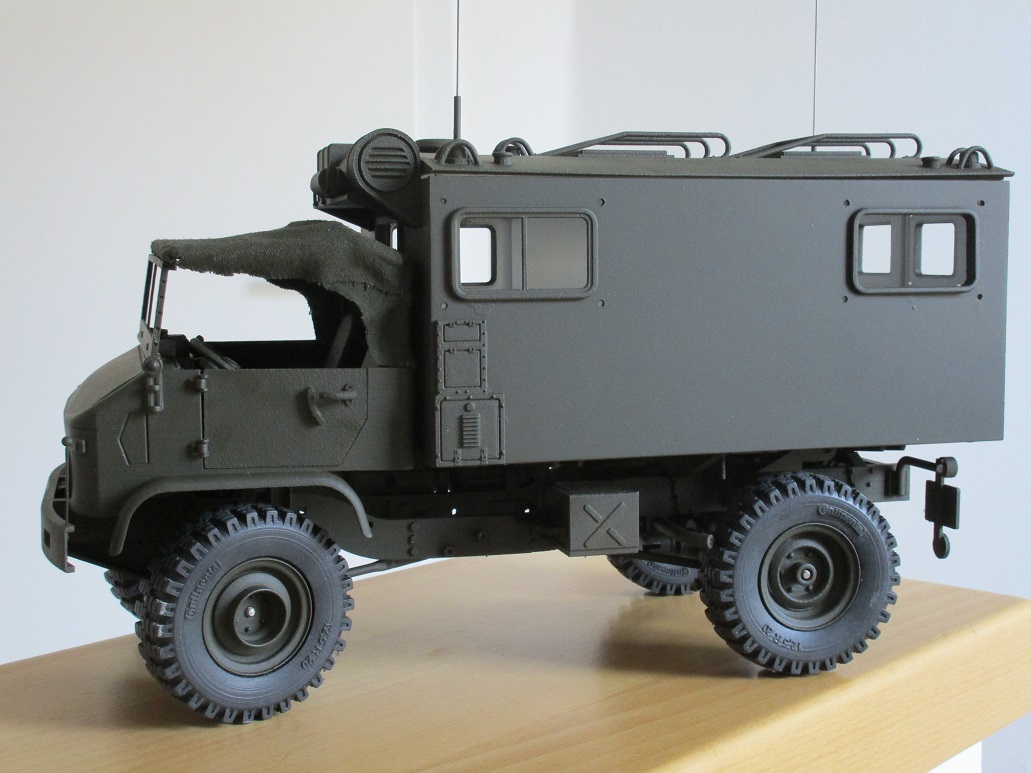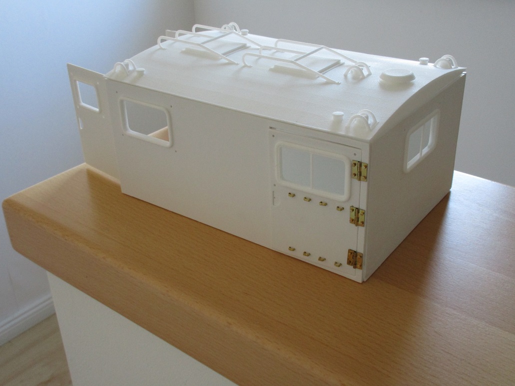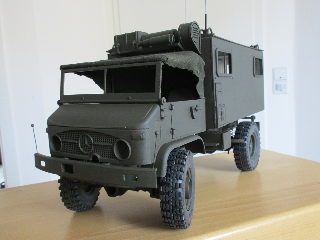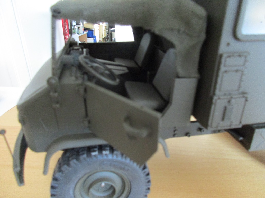 Gestern war mal wieder schönes Basteln angesagt. Ich hab mir eine Halterung für das Lenkservo konstruiert und erstmal provisorisch eingepasst. Am Funkkoffer hab ich die Türrahmen nachgearbeitet so das die Türen vernünftig schliessen. Dazu massive mechanische Hilfen um die Türen zuzuhalten. und mal die abnhembaren Fensterabdeckungen montiert. Sieht so mehr nach Mil.-fahrzeug aus, weniger nach Wohnmobil.