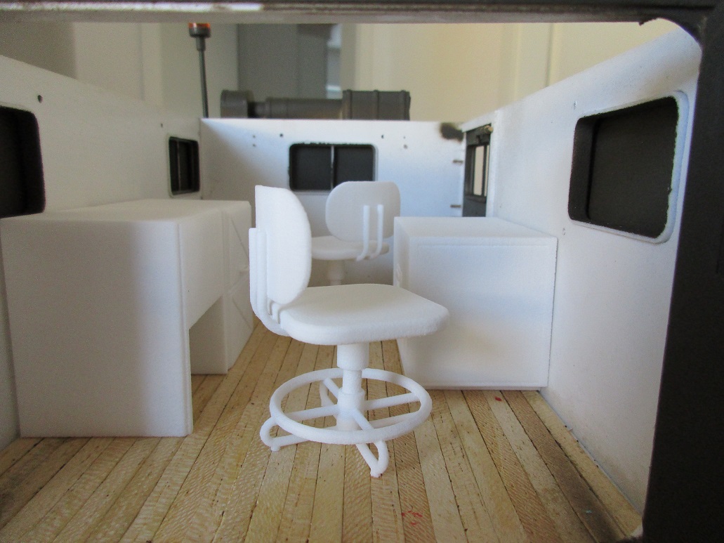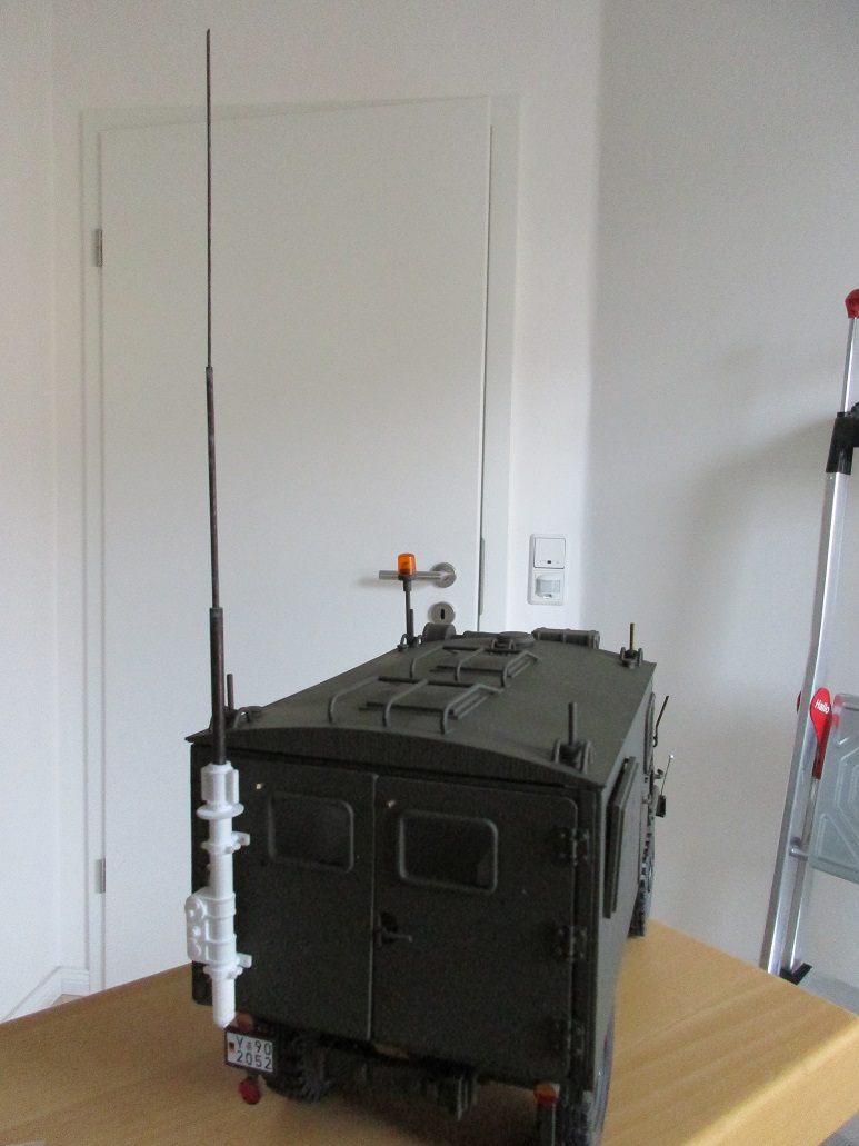 So, der Büroarbeitsplatz steht. Fehlen nur noch liebevolle Kleinigkeiten. Aber das wird noch. Der Funkmast wird mit teleskopierenden Messingröhren vervollständigt.