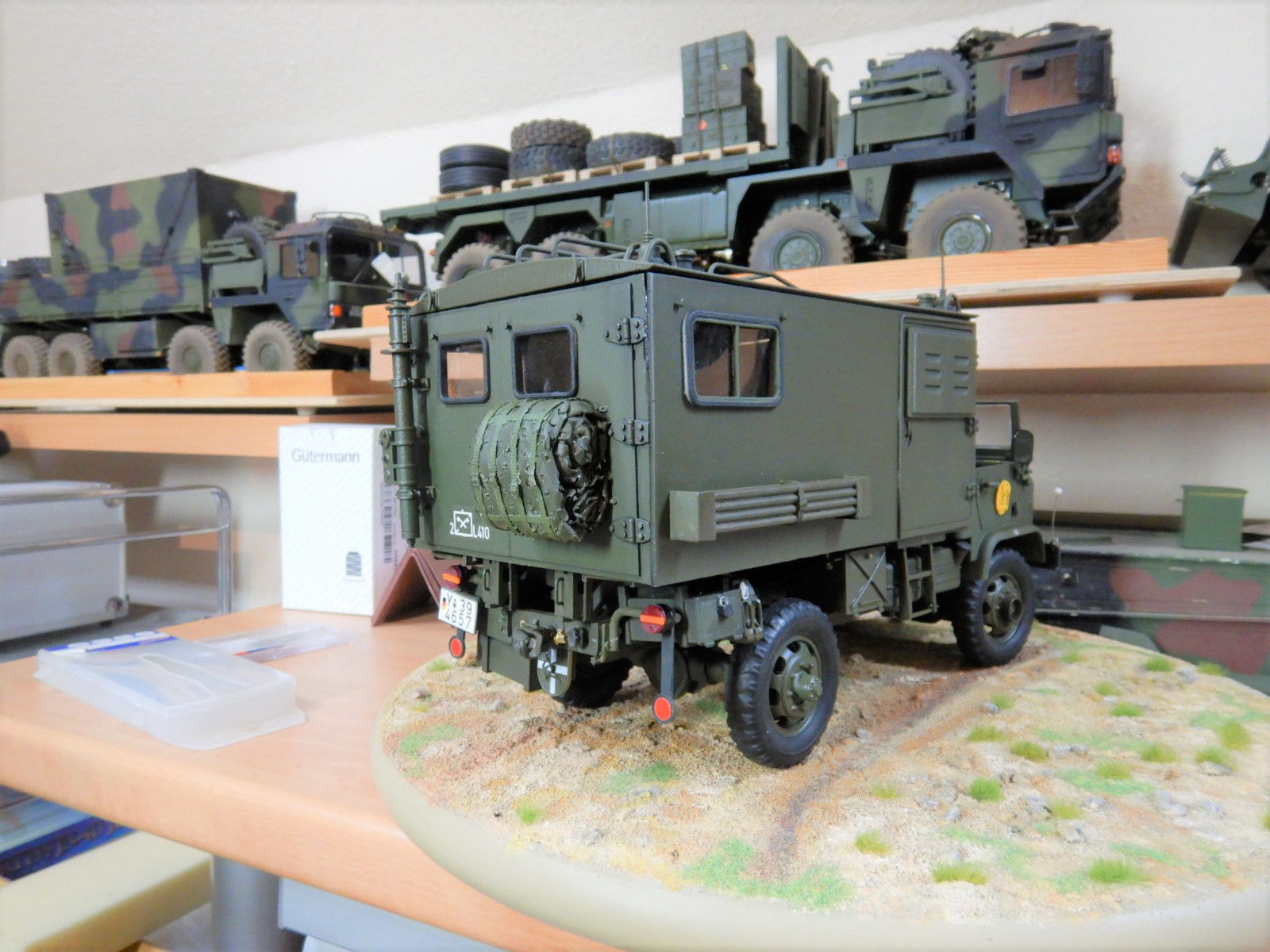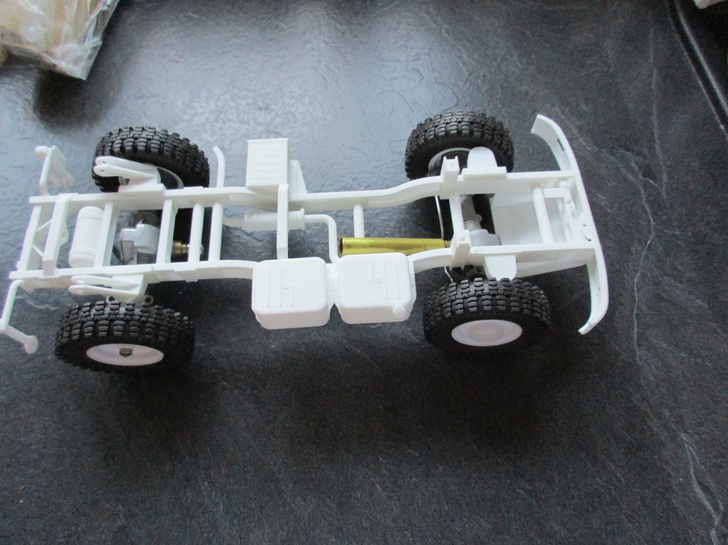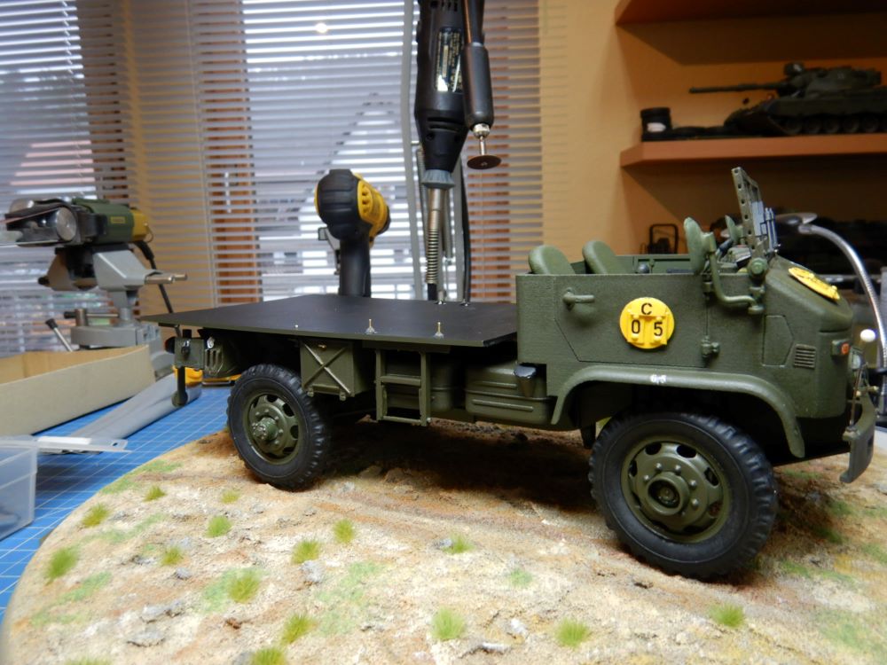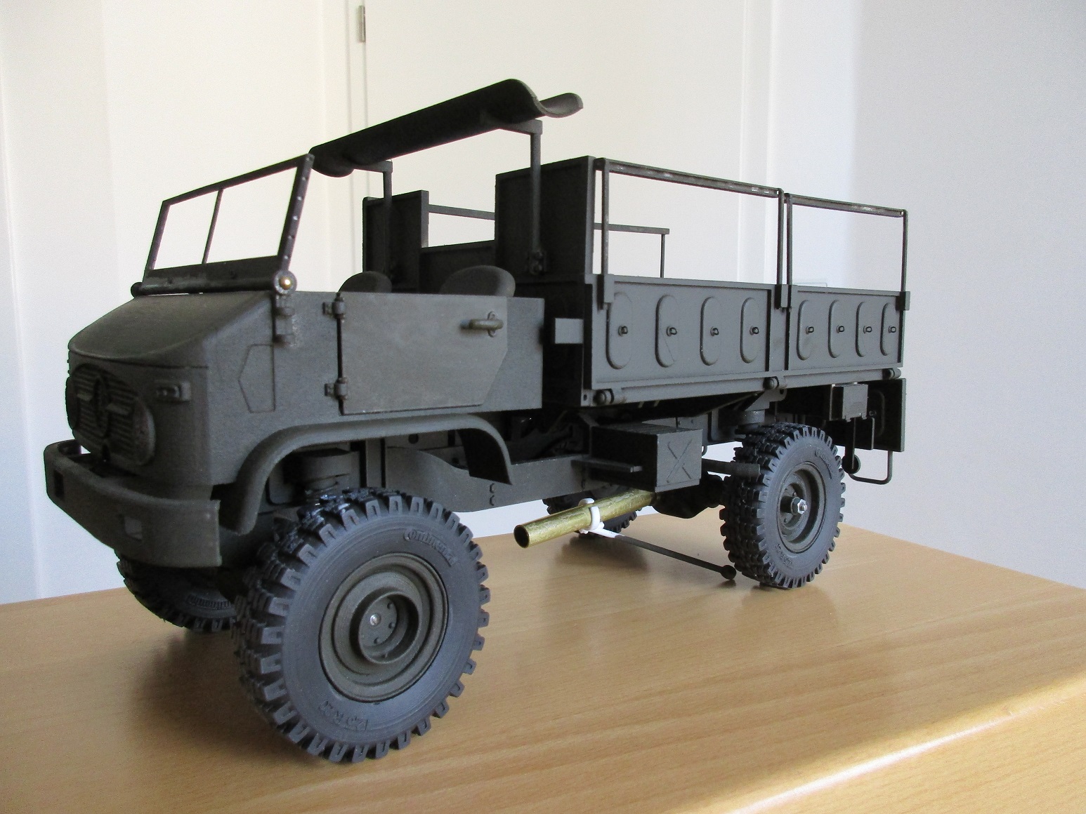 Die Pritsche hat Farbe bekommen. Ja, der Kardan und die Aufhängung brauchen noch etwas Zuwendung. Aber das wird. Übrigens das erste Militärmodell mit einem so mächtigen Spiler. Das Ding muß ganz schön schnell gewesen sein.