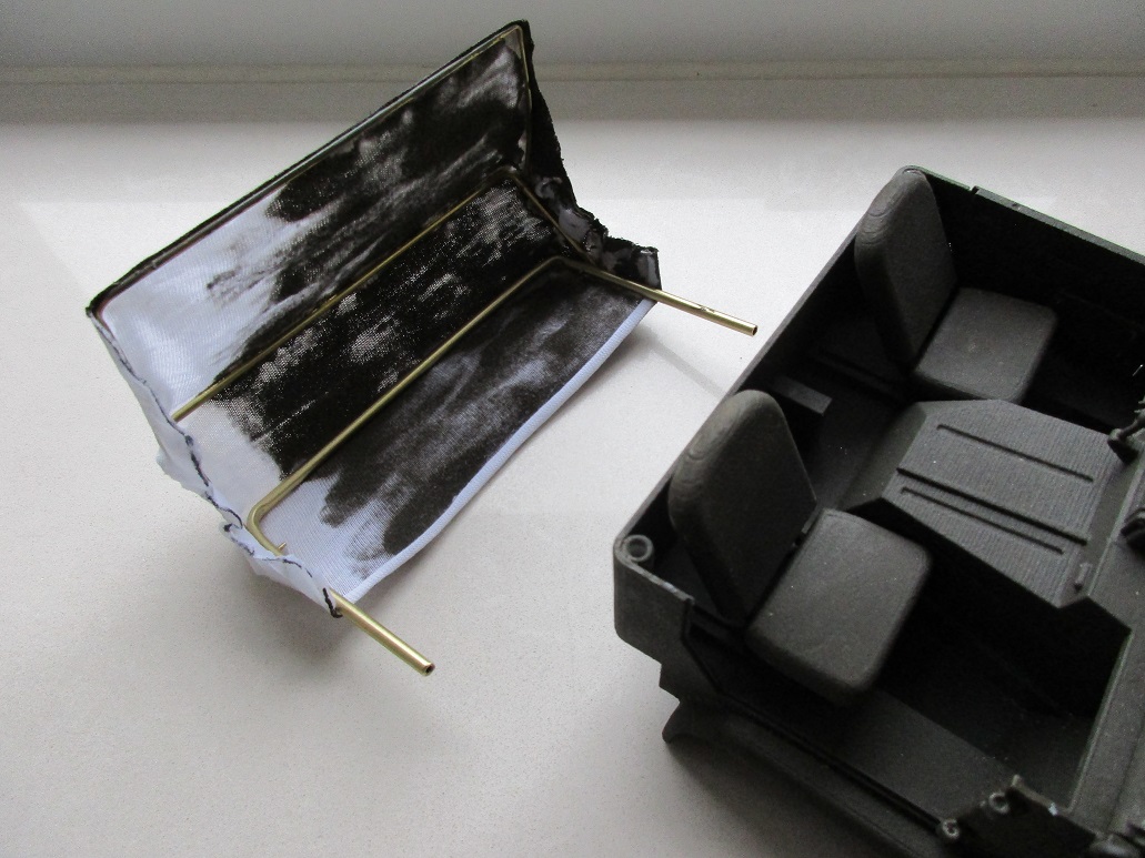 Nachdem ich mich von meinem Funkkoffer getrennt habe hab ich mir die Pritsche hergenommen und begonnen Sie zu detaillieren. Das Verdeck der Fahrerkabine entstand aus einem alten T- Shirt. Da das Färben viel Farbe "frisst" hab ich für die Plane der Pritsche ein BW Hemd bestellt.