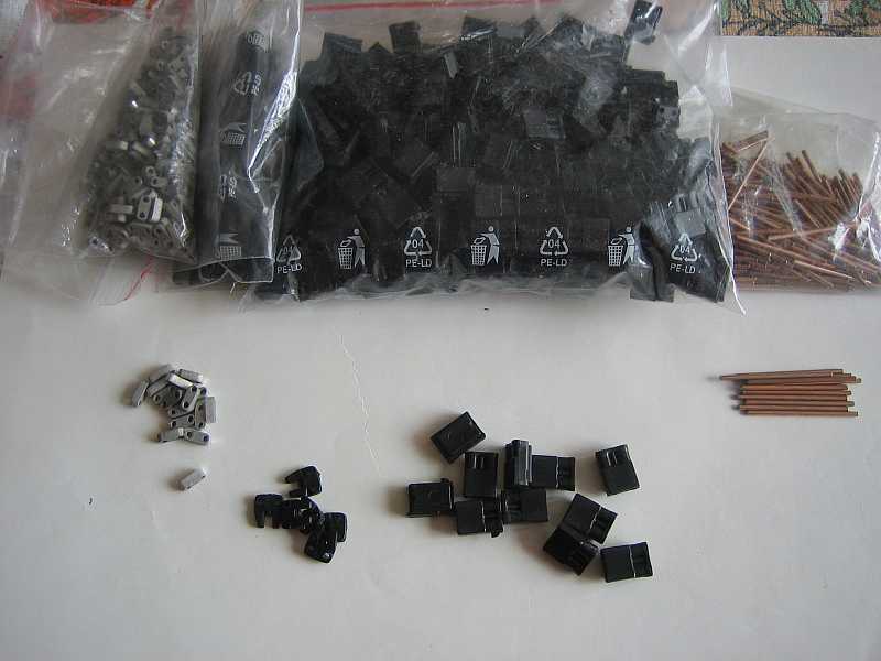 Die Teile schauen soweit ganz gut aus. Die schwarzen Kunsstoff-Teile haben manchmal noch von einige Gratstellen, aber die kann man problemlos mit einem Cuttermesser / Skalpell entfernen. Einziger Wermutstropfen sind die Endverbinder. Der Oberfläche nach zu urteilen sind sie per Wasserschneidverfahren ausgeschnitten worden. Bei einigen Endverbindern sind dadurch die Bohrungen für die Stifte nicht genau hergestellt worden, weil der Wasserstrahl beim Ansetzen etwas daneben lag.
