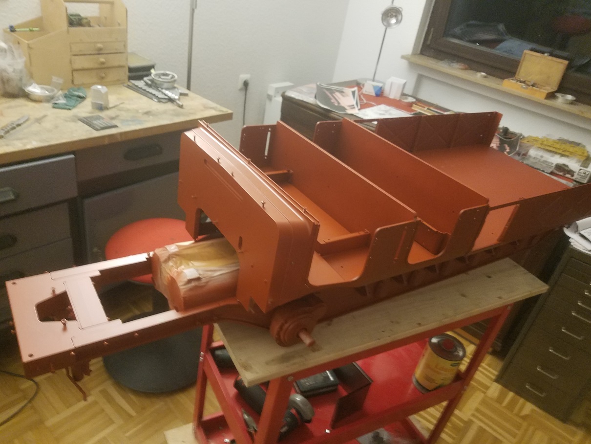 Rahmen und Karosserieteile grundiert und provisorisch zusammengestellt.