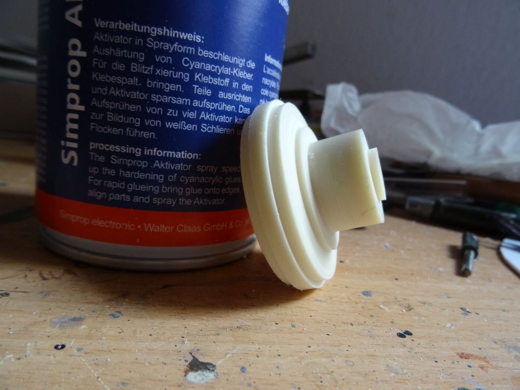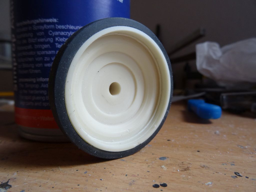 Nun habe ich mir die Laufrollen ausgemessen und nach der Vorlage und Bildern ein Urmodell aus Resin gedreht . Glücklicherweise passt hierauf die Laufrollenbandage des Tamiya Pershing ( wenn auch sehr weit gedehnt aber auch noch sehr weit vom Reissen entfernt )