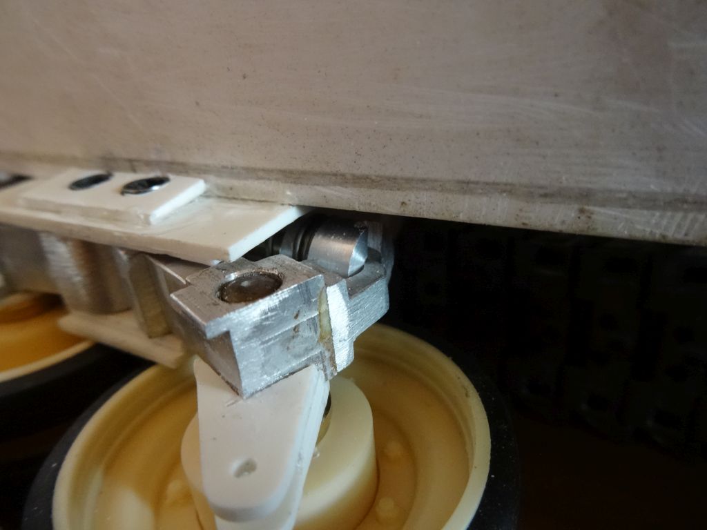 Die beiden Messinghülsen vorne sind als Sicherung aufgesetzt , damit sich die Schwingarme der Umlenkrollen nich komplett nach hinten ziehen ( die Ketten haben ein ganz schönes Gewicht und ziehen somit gut nach hinten ).