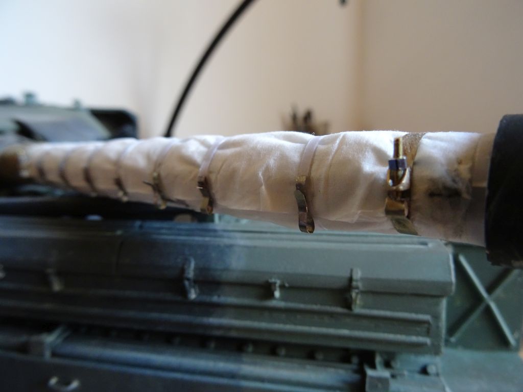 Hier noch der Faltenbalg , der aus *Eisenbahnkabel * gewickelt wurde. Diesem ist zwar der Rohrrückzug zum Opfer gefallen aber da der Rückzug beim Original auch nicht so groß ist , kann ich das verschmerzen.