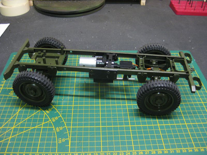 Was auffällt, ist der falsche Radstand - die komplette Vorderachse muß um ca. 1,5cm nach vorne verlegt werden.