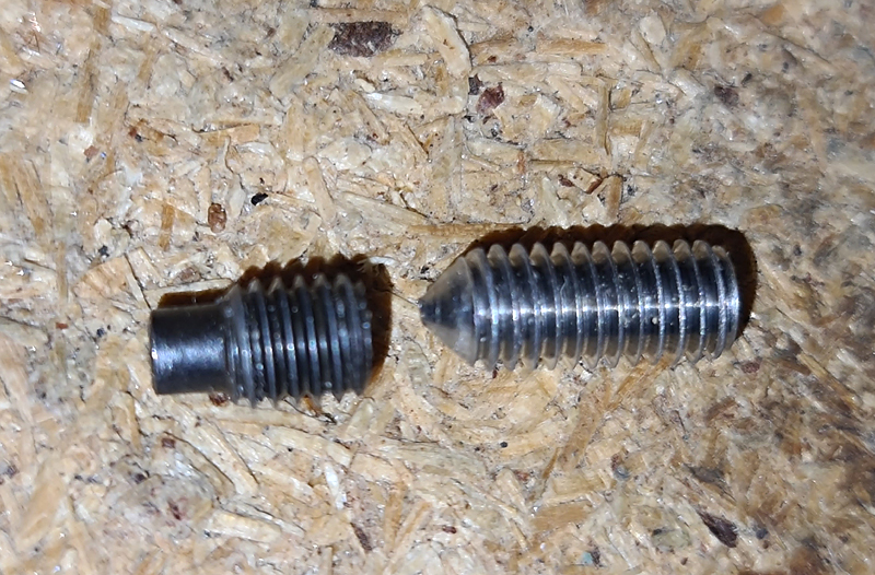 Und hier die Zapfenmadenschraube und dahinter die Kontermadenschraube: