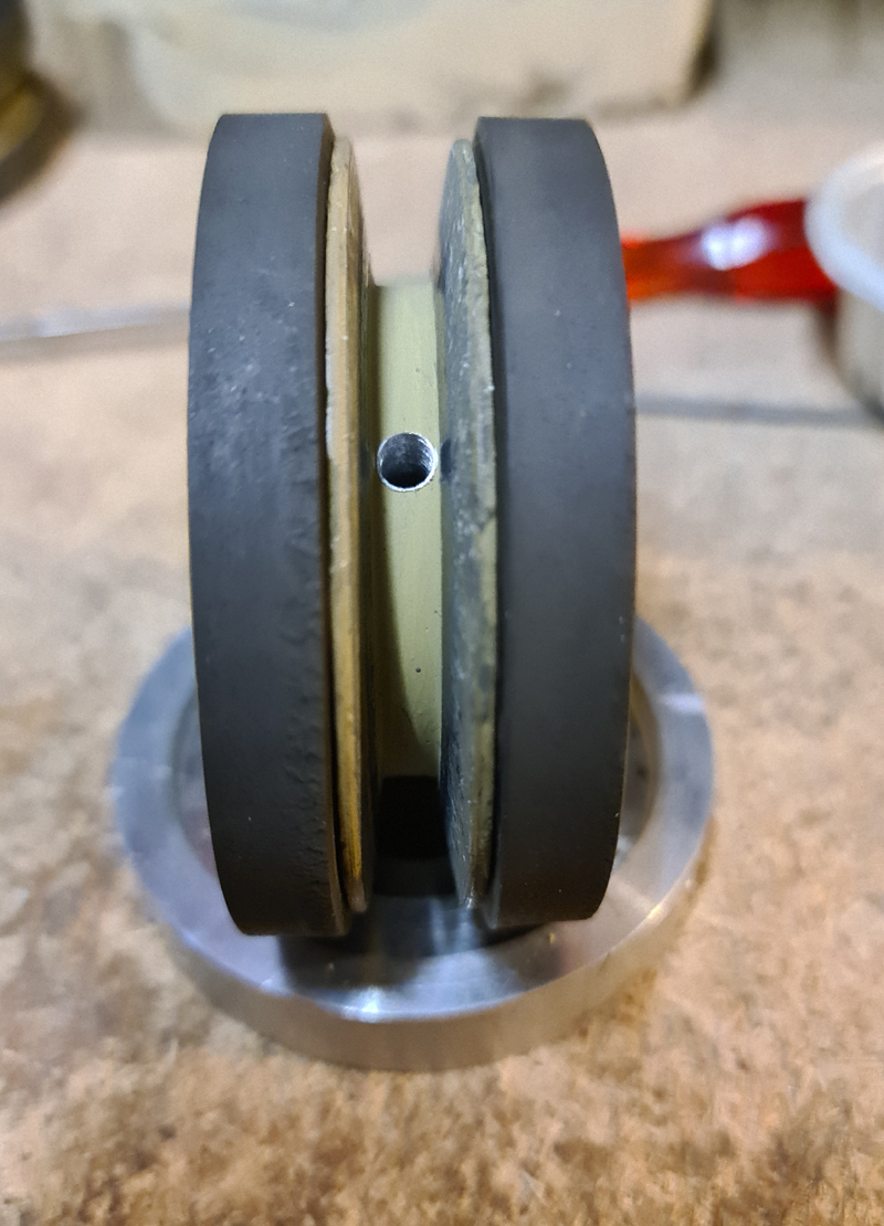 Die Nut in der Achse kennt man ja schon. Sie hat natürlich eine Fettfüllung bekommen: