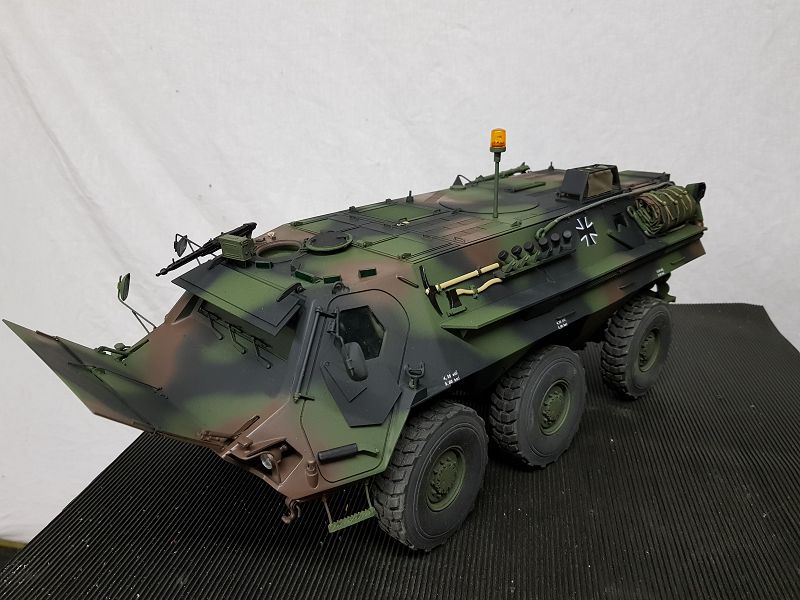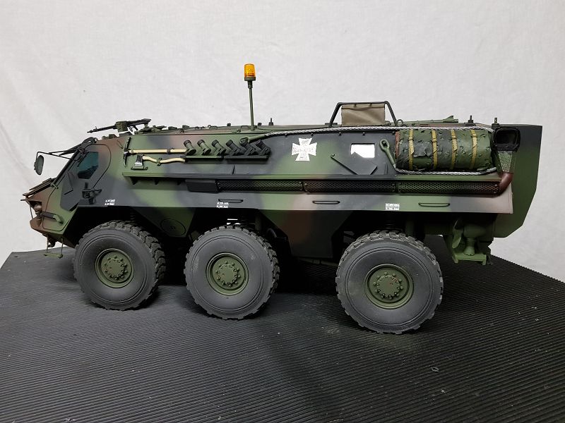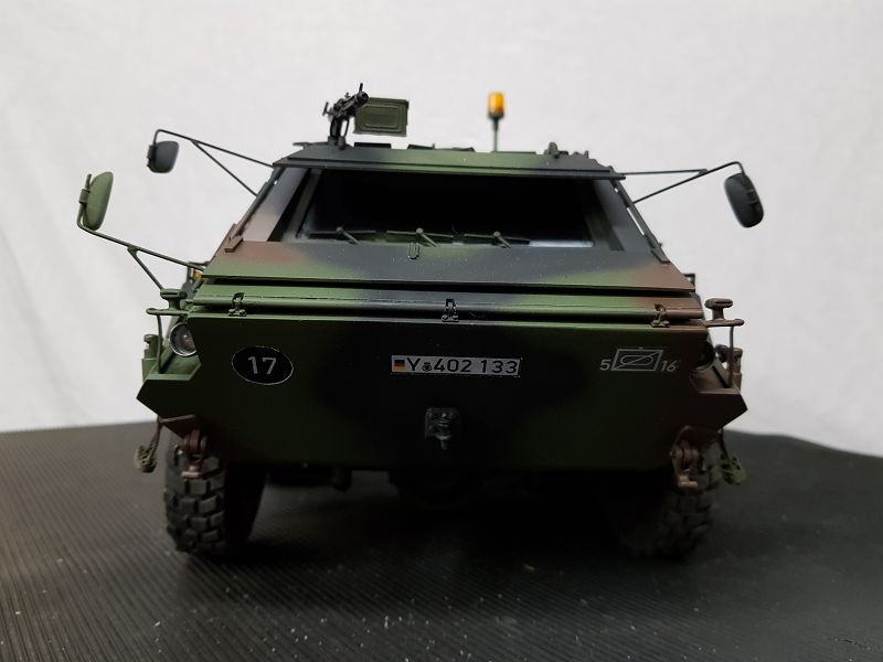 eine Frage, soll keine Kritik sein! Ist der Fuchs in 1:16 wirklich so wenig detailiert? Nur was mir direkt aufgefallen ist: Schutzbügel über den vorderen Tarnscheinwerfern, an den Schotteln diese oberen, ovalen Flansche oder die Ösen für Vorhangschlösser an den Vordertüren?