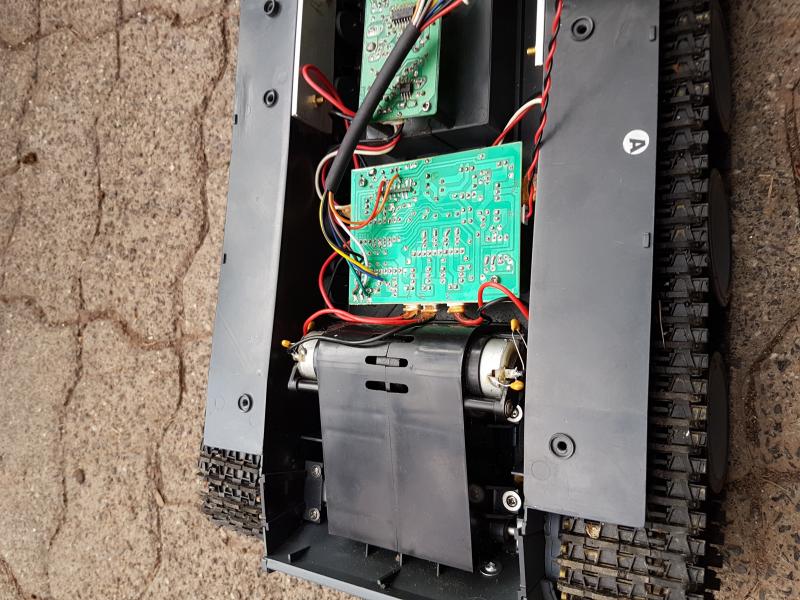 Es ist eine 27mhz Platine mit Steckquarzen verbaut, das Getriebe kenne ich auch nicht und ist komplett mit einer Plastik- Schale ummantelt. Die Platine läuft Proporzional. Das Chassis scheint auch nicht von Heng Long zu sein, völlig andere Getriebebefestigungen.