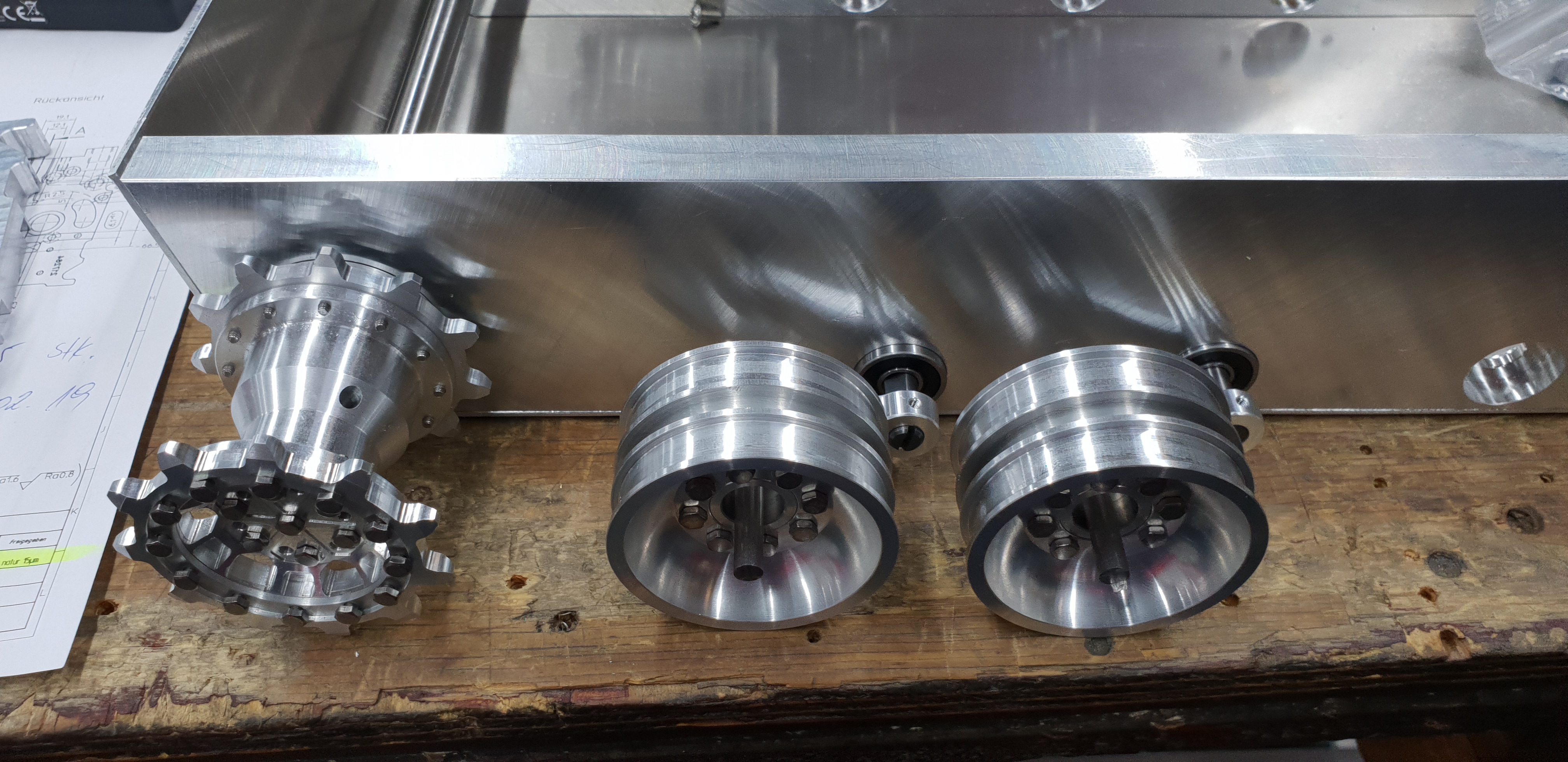 Schick...Aber bei den Laufketten , Gerhard sagte schon was mit den Schwalbenschwänzen ,ich blättere jetzt nicht zurück,ging es doch um die Laufrollenräder mit FW Schlauch oder dementsprechent passenten Material geklebt . Aber Fräsen hin und her , auf die laufflächen müssen Gummistollen daher der Schalbenschwanz . Ich hätte V-Form gesagt . Die müssen mit eingekliebst werden .