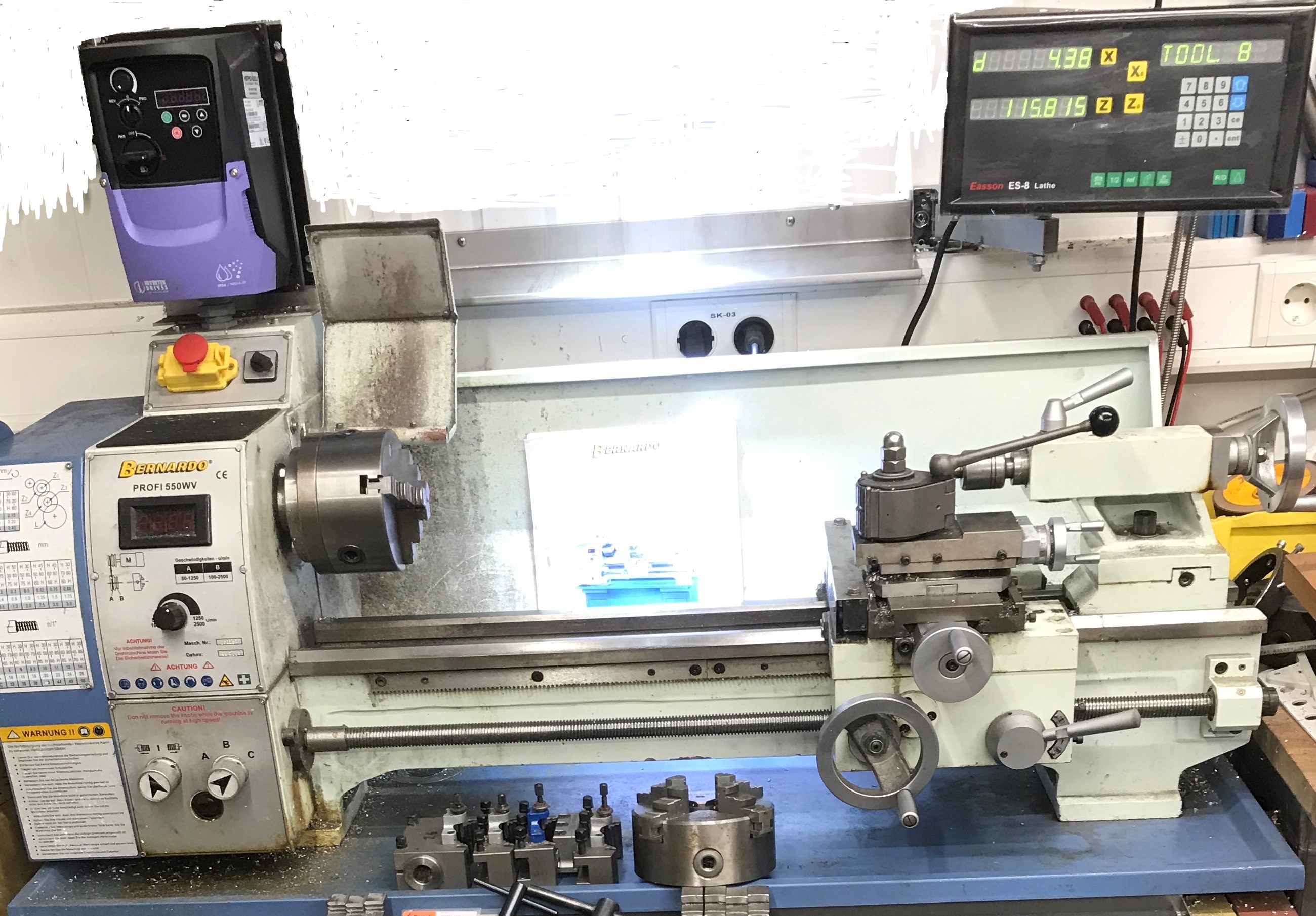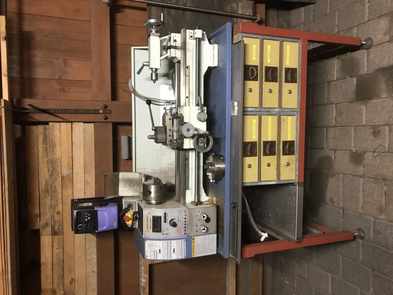 ich verkaufe meine Leitspindeldrehmaschine Drehmaschine Baujahr 2005 von Bernado. Ideal für Modelbauer. Untergestell ist ein Eigenbau mit einer Schubladeneinheit. Es ist ein Industriemotor verbaut der über einen Industrie Frequenzumrichter gesteuert wird. Die Drehzahl wird aber über dem Potentiometer der Drehmaschine eingestellt und wird in dem Display angezeigt. Preis 1600€ mit Zubehör wie auf den Fotos zu sehen.