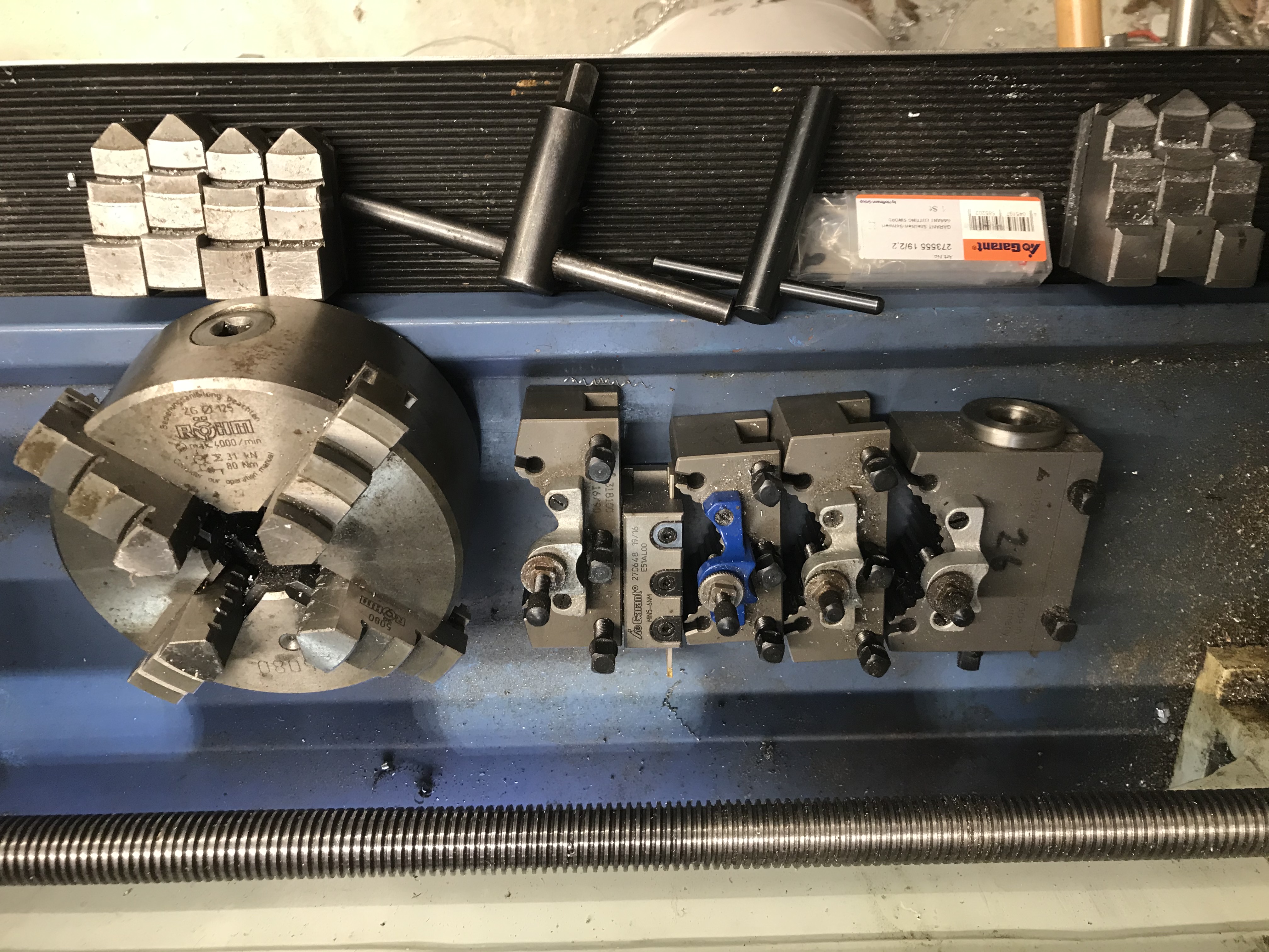Die Zubehörteile AXA Schnellwechselstahlhalter Größe A mit 4 Stück Wechselhalter, Positionsanzeige und Röhm Vierbackenfutter übersteigen bei Neuanschaffung schon den Angebotspreis.