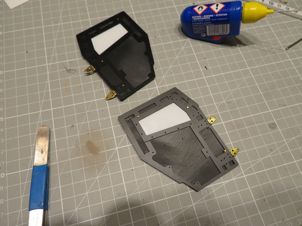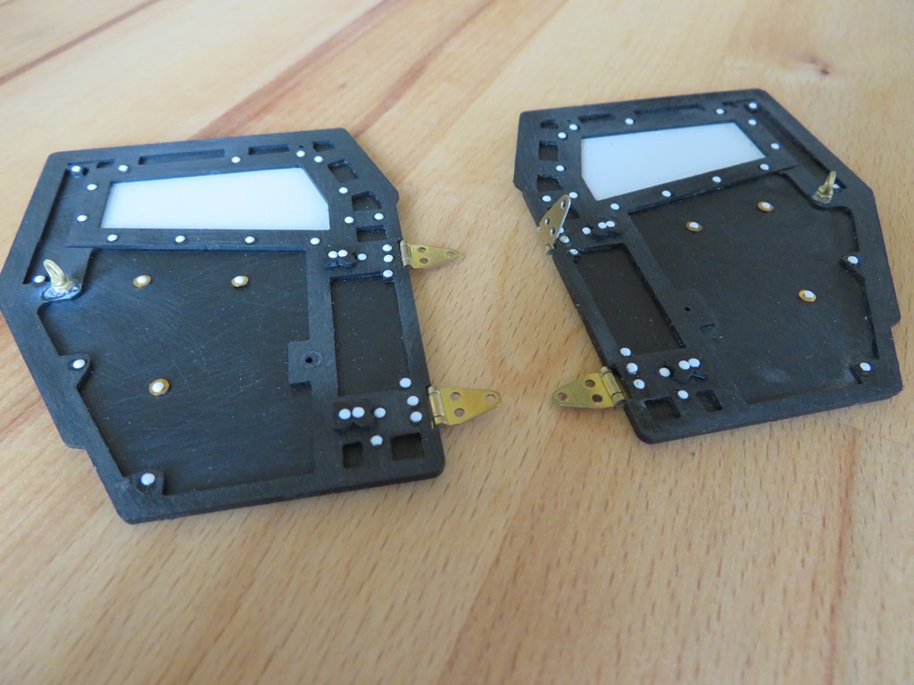Erste Schicht, bei den Türen ebenfalls mit den Magneten bestücken und die Mini Scharniere vorbereiten.