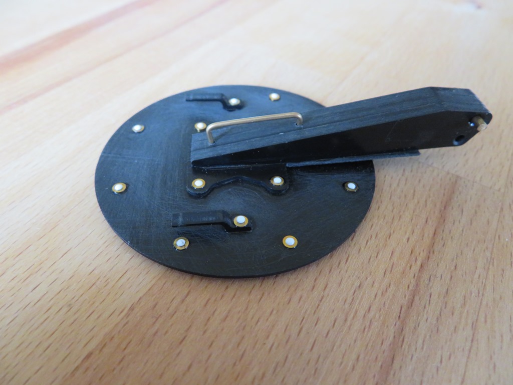 Hier kann man sehr schön die 3 runden Flachmagnete im Durchmesser von 2 mm erkennen.