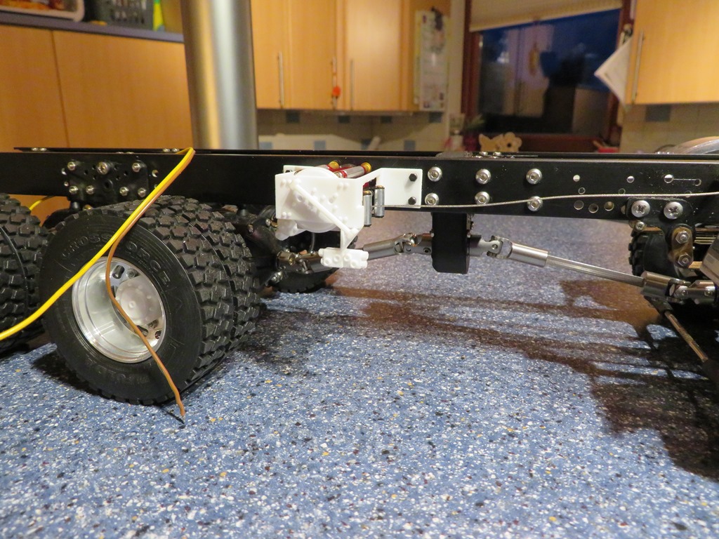 mit der Baugeschwindigkeit von Gerard kann ich nicht mithalten. Vor zwei Tagen sind die ersten Hubzylinder für den Kran eingetroffen. So konnte ich auch etwas weiter werkeln. Die Mechanik am Kran ist schon eine richtige Herausforderung. Die Abmessungen sind ja vor gegeben. Hier mussten jetzt die Hubzylinder funktionstüchtig eingearbeitet werden. Immer wieder einbauen, testen und anpassen.