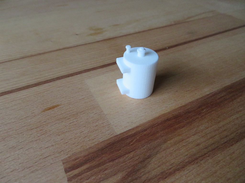 @Gerhard: Wenn du so kleine Dekoteile wie den Hydrauliktank hast, wurde ich dir den Druck aus Resin empfehlen, das ist deutlich detailierter und hat eine schöne glatte Oberfläche. Denke viel teurer kann es in der Produktion auch nicht sein.