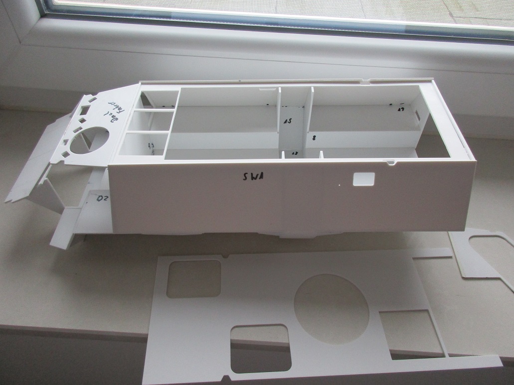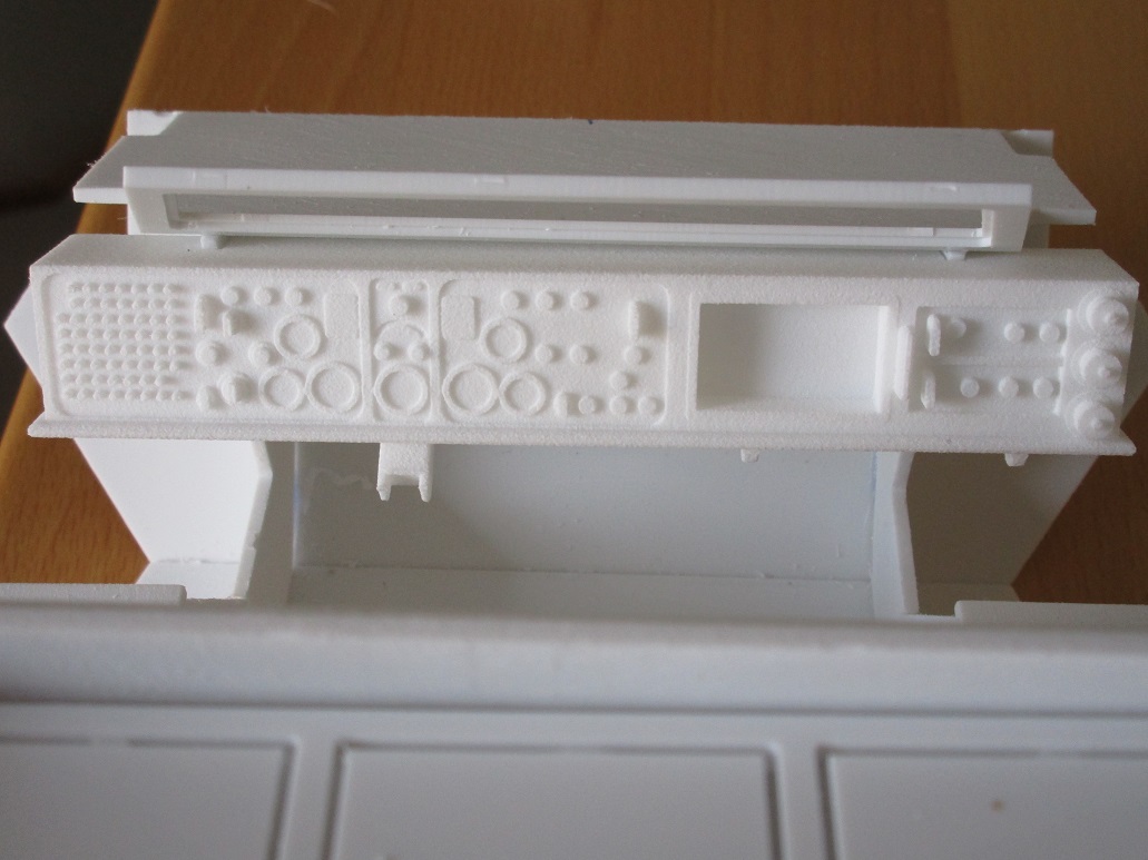 Gestern ging es etwas weiter. Die Seitenwände vorn sind nur aufgelegt. Darin schon die erste gedruckte Tür mit vielen Details. Auf Bild 2 schon weitere Druckteile.