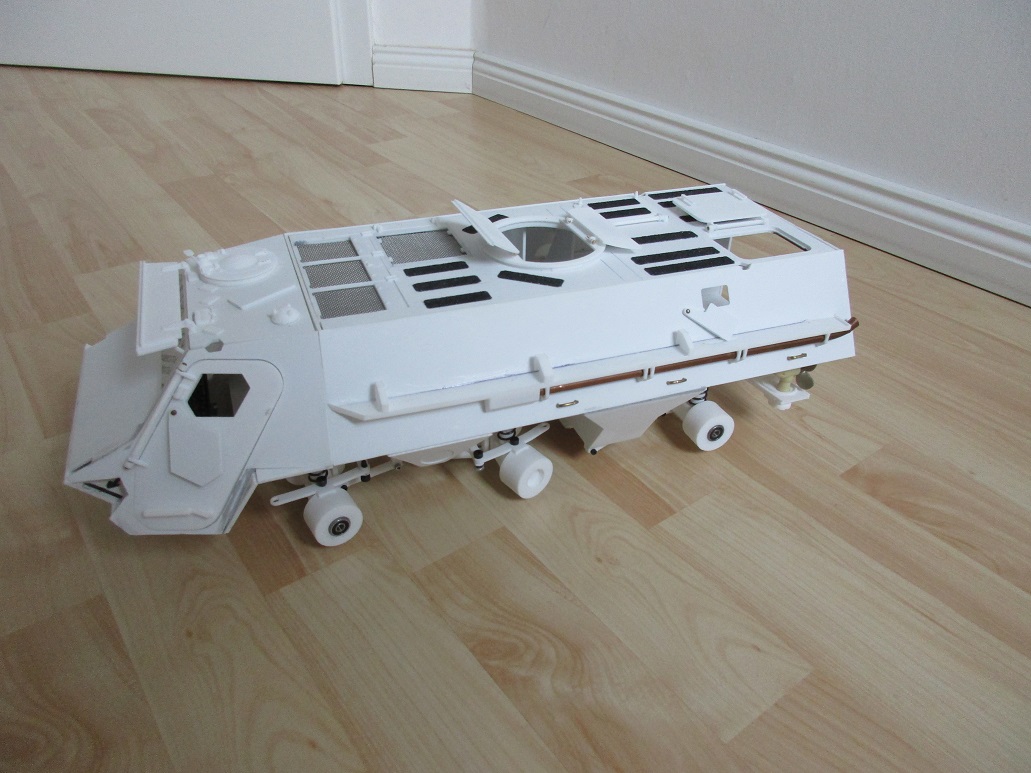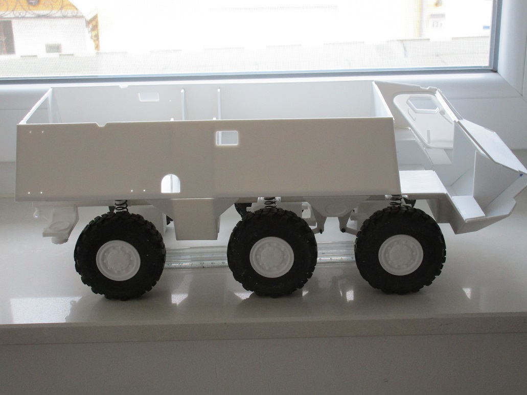 Dieses Fahrzeug gibt es nicht mehr. Es wurde mir in Erfurt auf der Messe verkauft. Naja, Preis war ok. Aber es steckte ja auch Arbeit drin. Aktuell sind weitere Druckteile im Zulauf für die ich erstmal ein neues Chassis aufbauen muss. Auch im Zulauf.