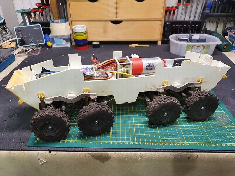 Beide Vorderachsen und beide Hinterachsen werden über je ein Servo gelenkt.
